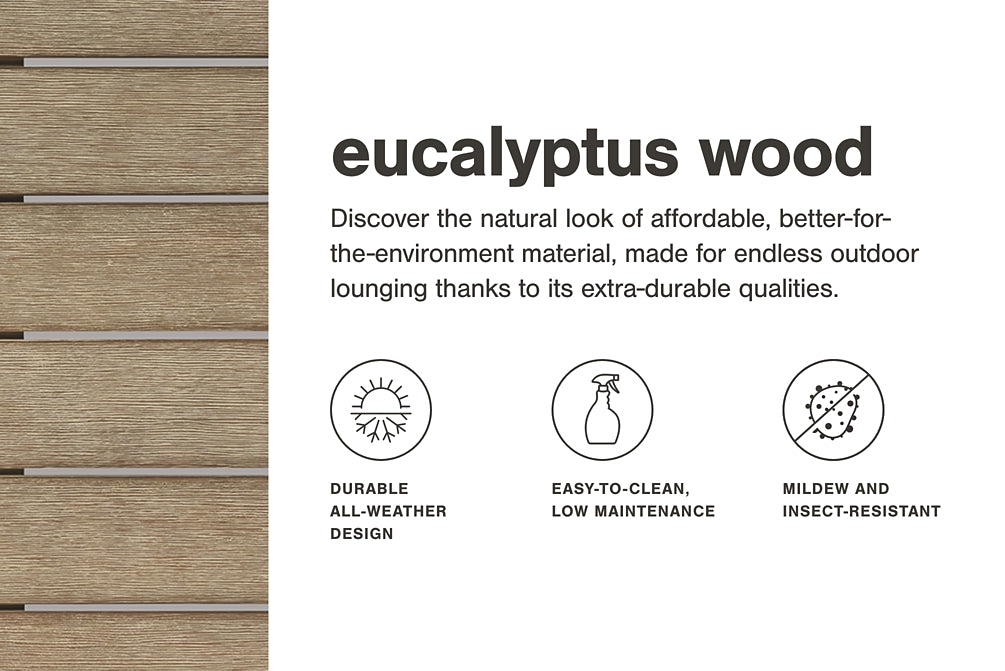Un choix élégant et sans effort en matière de mobilier d'extérieur, ce groupe de sièges d'extérieur allie robustesse et style de manière si agréable. Mieux encore, il a l'avantage en termes de prix. Pour une protection encore plus grande contre les intempéries, les cadres en bois d'eucalyptus sont traités par un processus de finition en 5 étapes. Somptueusement doux mais remarquablement durables, les coussins et oreillers inclus sont enveloppés dans un tissu Nuvella® haute performance et nécessitant peu d'entretien que vous adorerez à coup sûr.