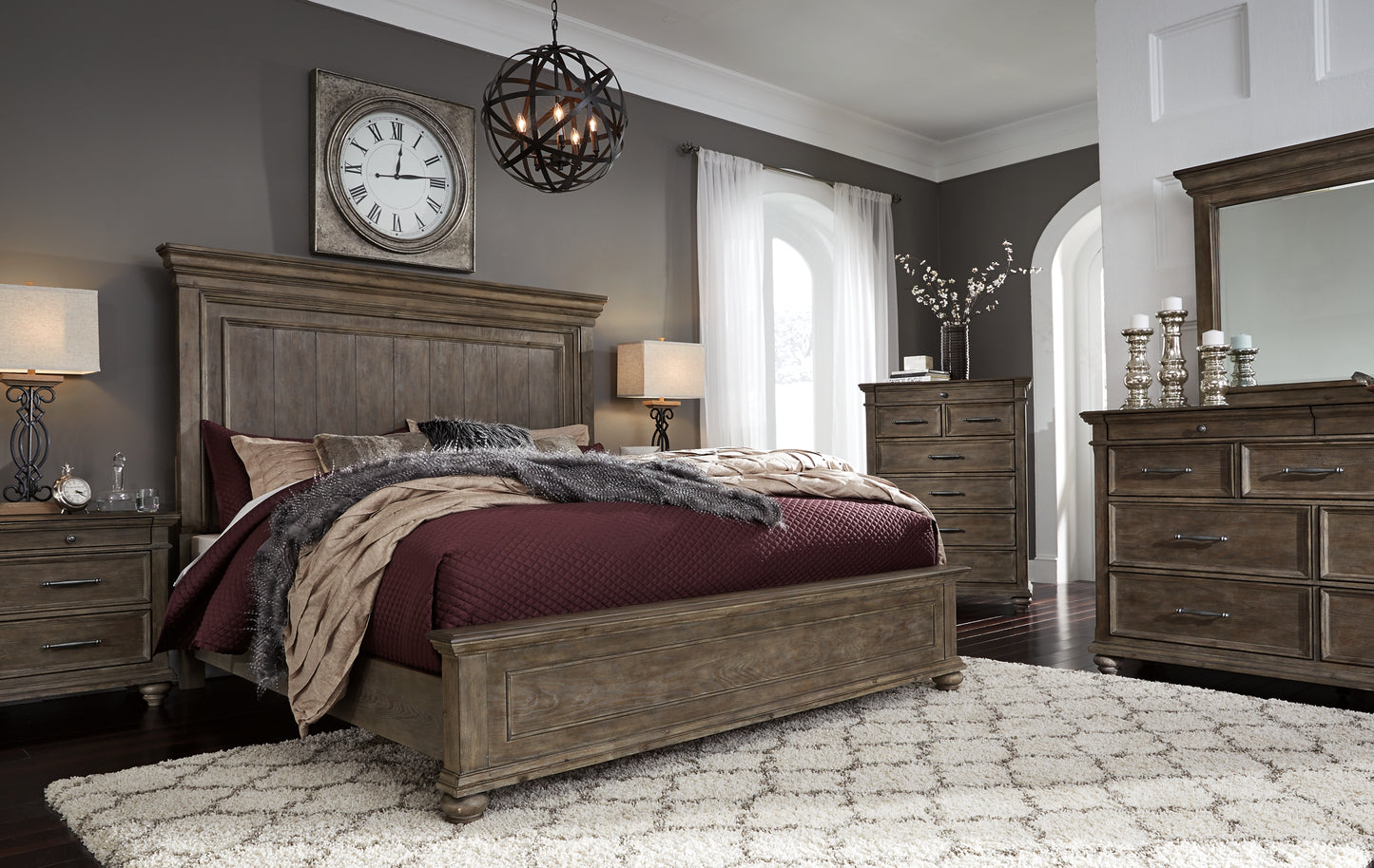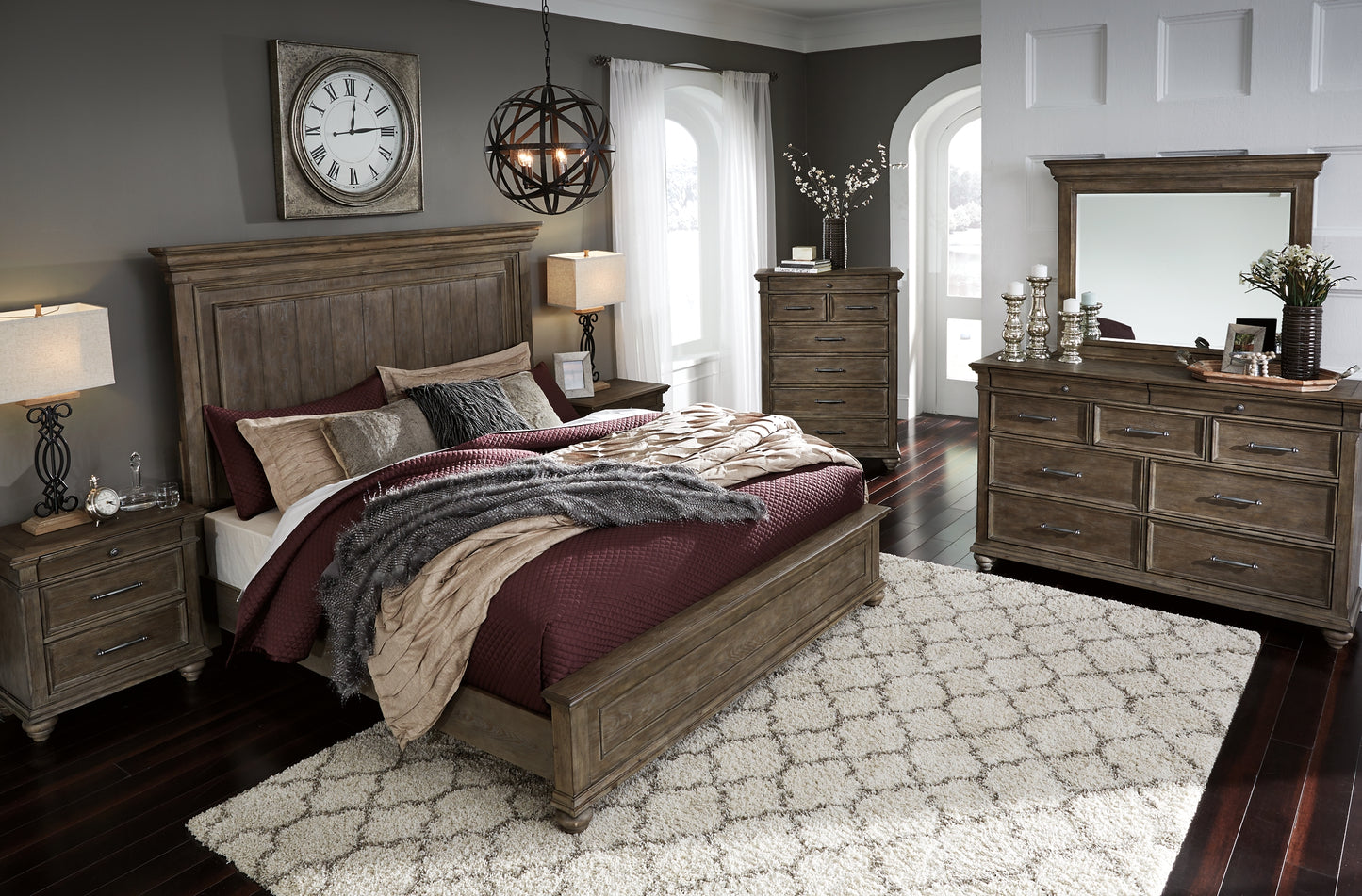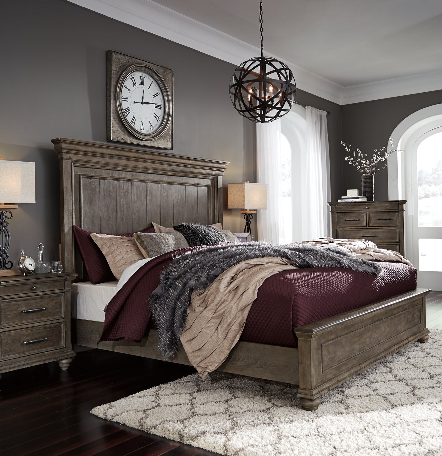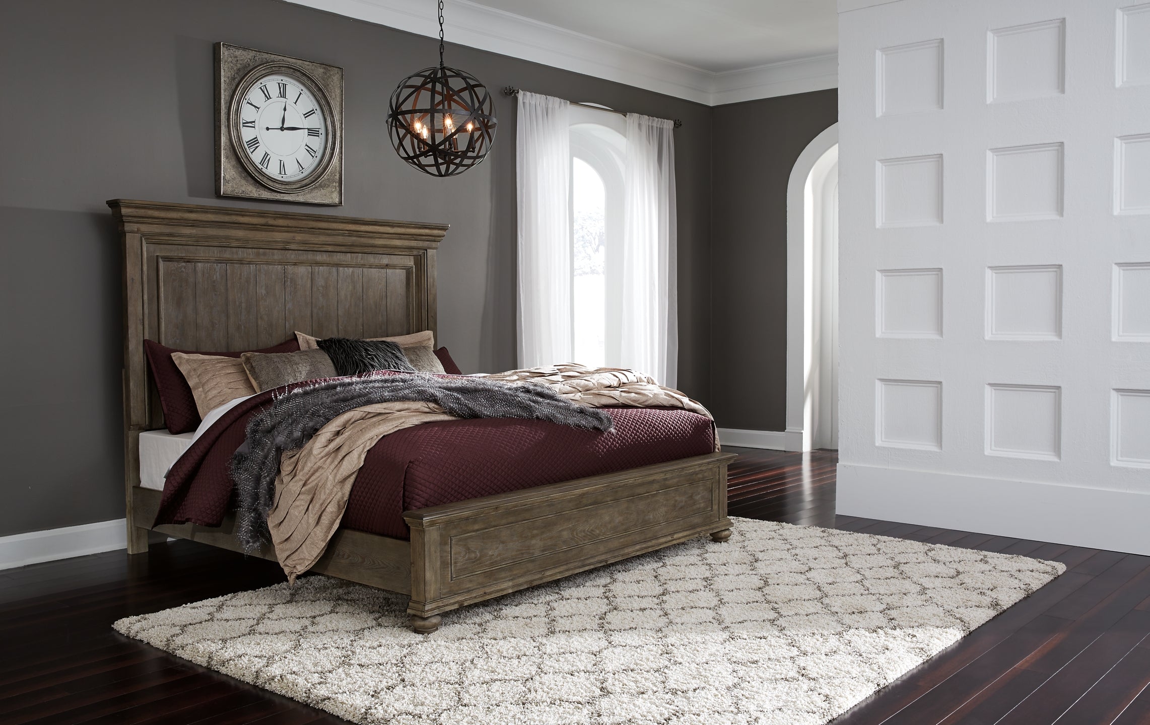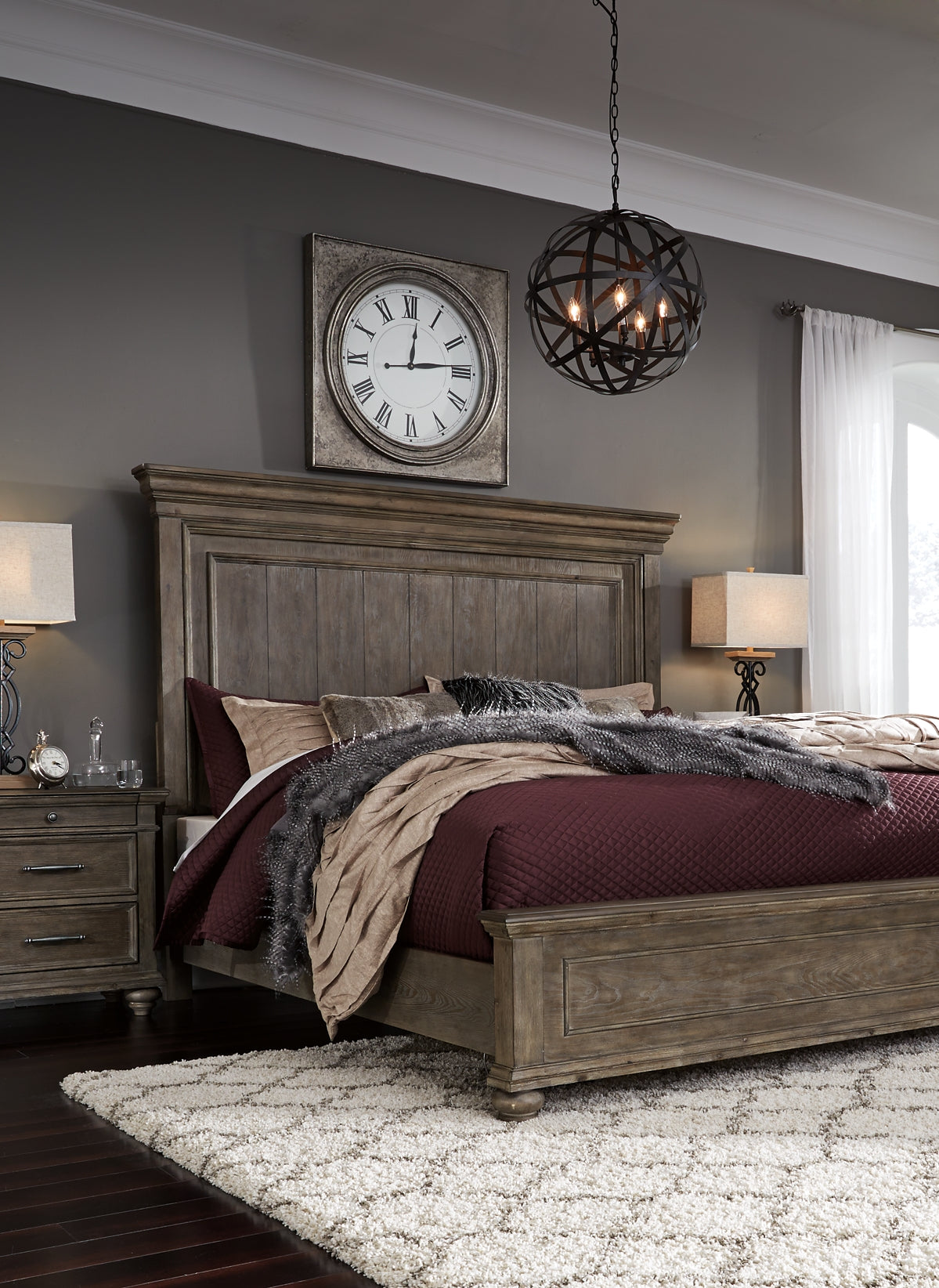 Accueillant. Chaleureux. D'une teinte céleste. Attrayant avec une finition grise patinée, des moulures substantielles et une tête de lit haute de style manoir avec une grande présence, ce lit à panneaux California King est sûr de donner à votre propriété un aspect encore plus familial. Le look est embelli par des placages en orme pour un chef-d'œuvre de suite principale richement conçu pour des années de satisfaction. Que votre esthétique soit classique, éclectique ou de ferme moderne, rassurez-vous, ce lit à panneaux California King de haute qualité et de haute qualité est un choix inspiré. Matelas et sommier/sommier disponibles, vendus séparément.