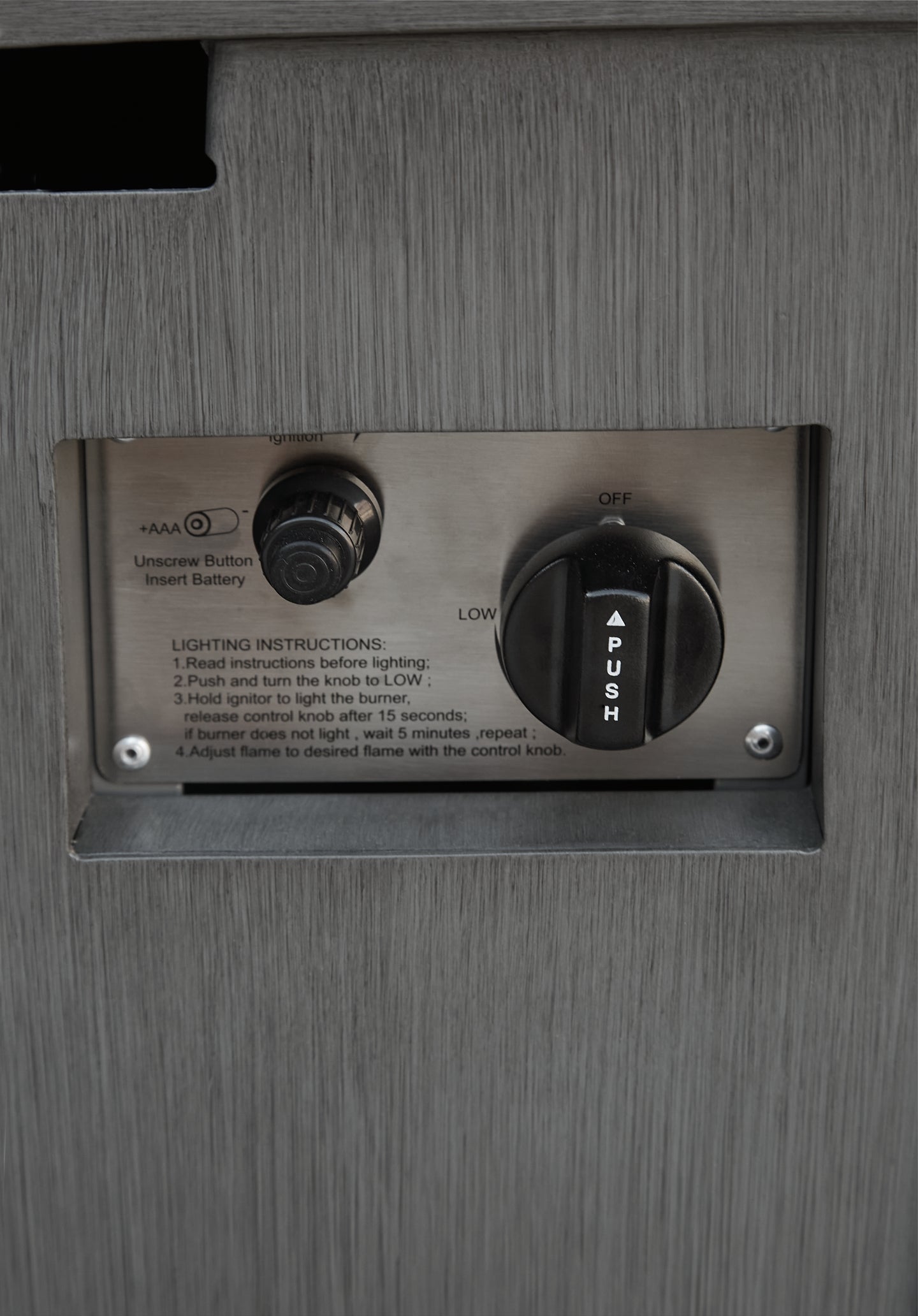 Arborant une finition aspect bois gris peinte à la main pour une sensation d'élégance terreuse, cette table de foyer transformera à coup sûr votre espace arrière-cour en un lieu de divertissement. La façon dont sa flamme vacillante semble flotter sur un lit de perles de verre transparentes est vraiment fascinante. Ce foyer d'extérieur, fabriqué en aluminium robuste antirouille et équipé d'un couvercle de brûleur et d'une housse de protection en polyester, résistera magnifiquement aux saisons.