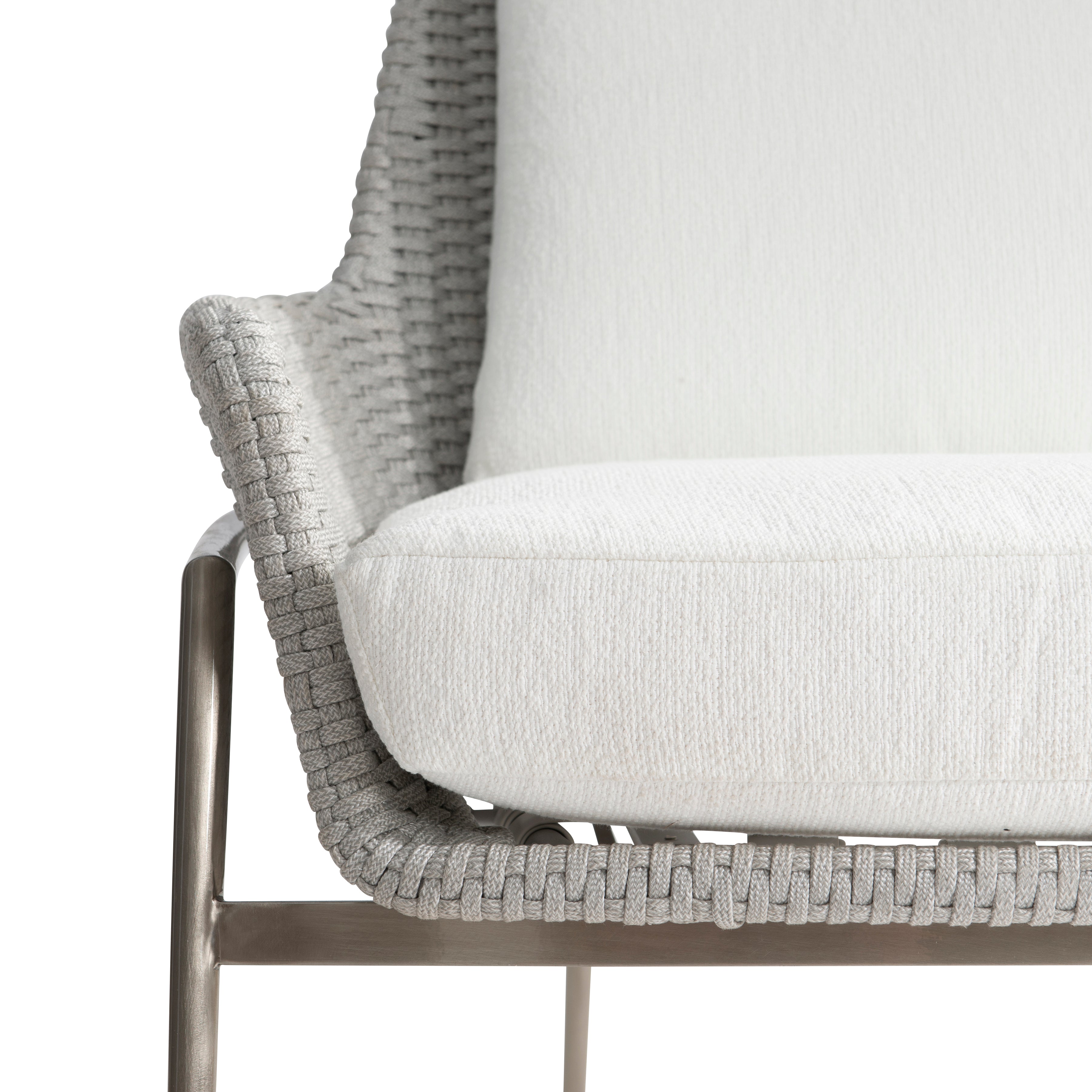 • Siège enveloppé d'un tissage en corde plate en finition Silver Pearl