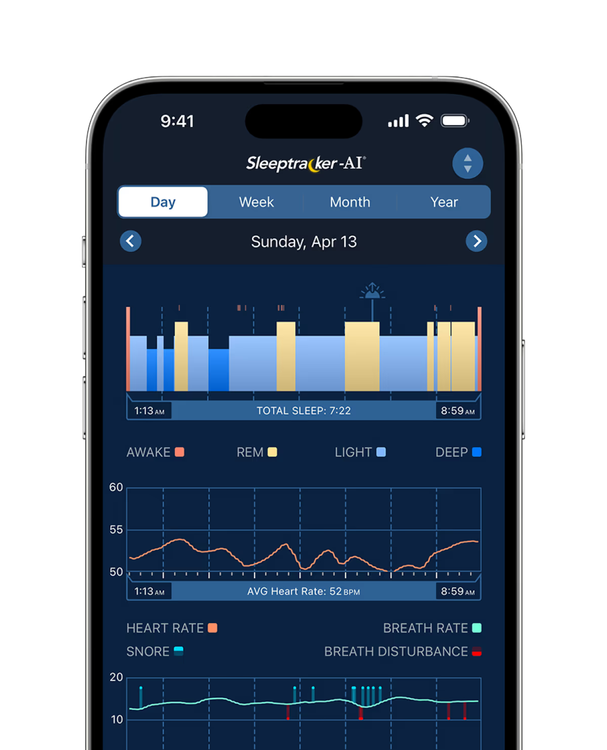 With AI-powered sensors and real-time analytics, Sleeptracker-AI® technology provides specific insights based on every night’s sleep.