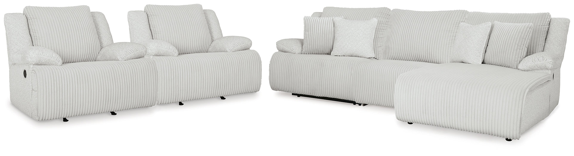 Experience unparalleled comfort with this seating package. It’s a stylish and invitingly soft look—made all the more appealing by cozy corduroy cushions that feel great and add a touch of texture. The neutral hue effortlessly blends into your decor, making it a gorgeous addition to your home. So sit back and unwind in this spacious recliner, perfect for gatherings with friends and family.