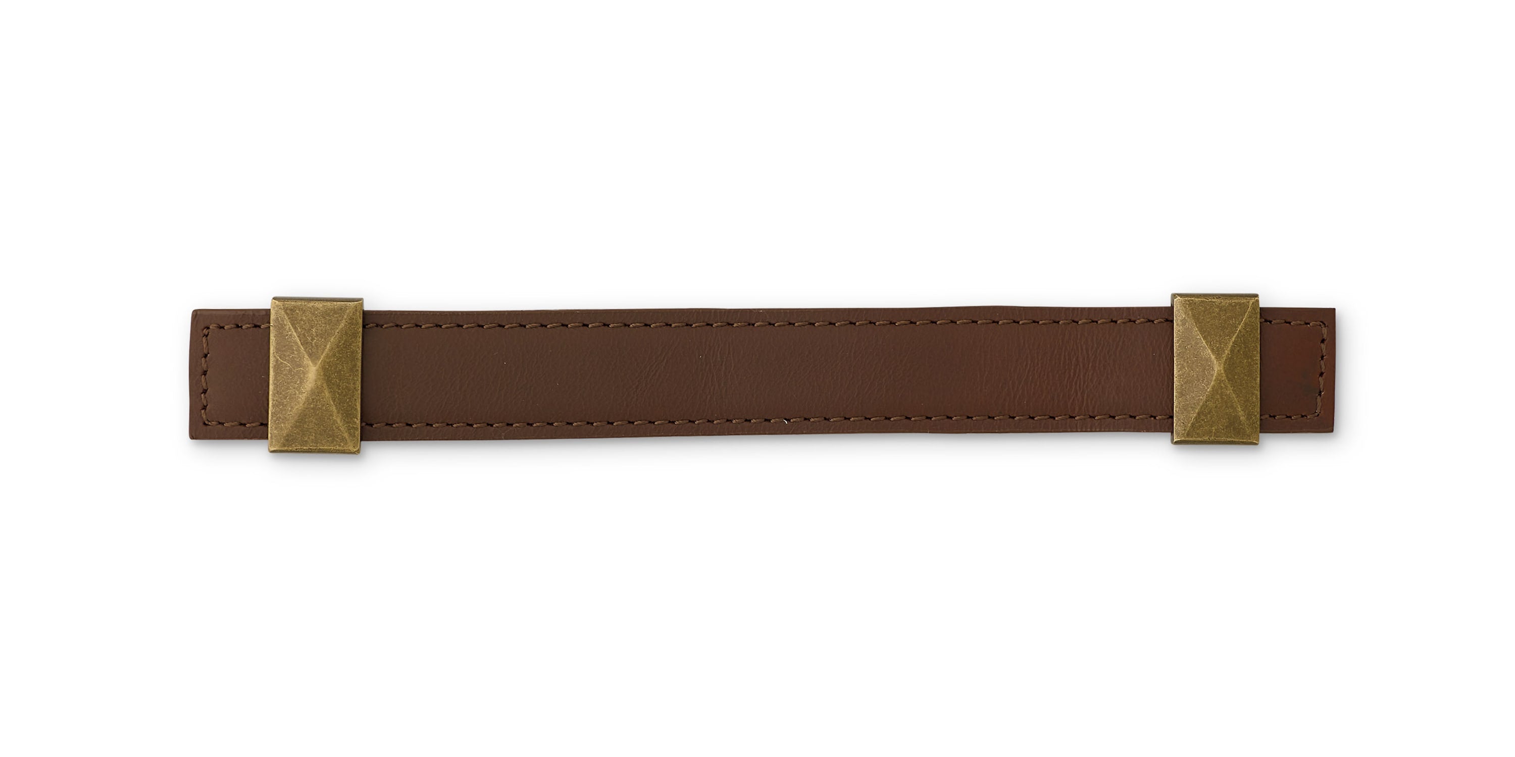 Like adding a fine leather accessory to your outfit, the No. 28 Leather Pull adds distinction and originality to your furniture and cabinetry. Available in two sizes, these full grain leather pulls feature hand-finished, burnished brass details. The leather retains its celebrated natural character in either of its two finish options, both of which will acquire a patina with time and use. It also possesses the rare quality of allowing for some flexibility when installed, with the leather accommodating a bit of bend if the screw holes are placed a bit closer together. Cast & Forge No. 28 burnished brass knobs are available in two sizes to offer a full complement of hardware options.
