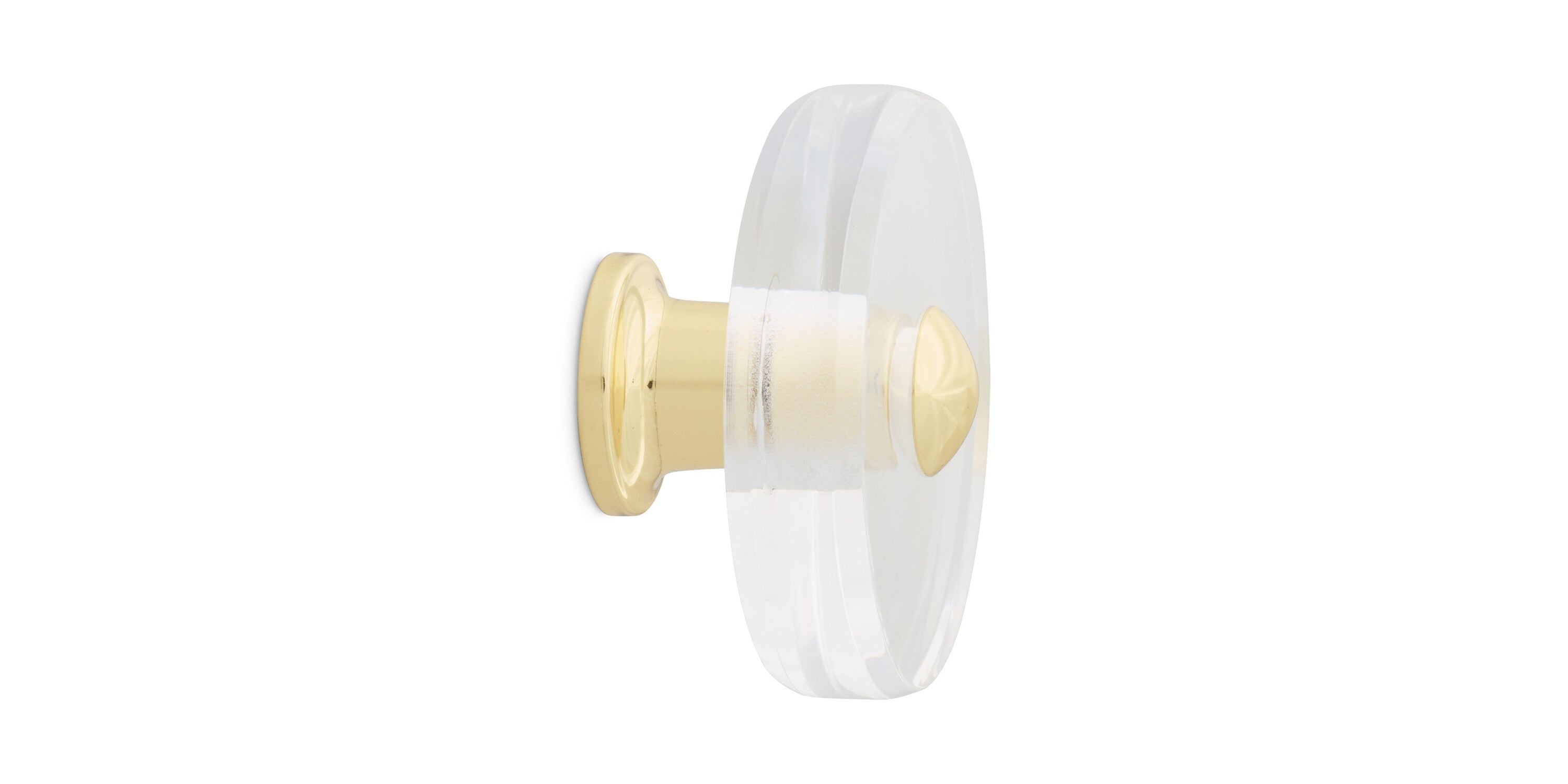 The punctuation of round No. 47 Lucite Knobs is the perfect period to the statement you’re making with your furniture and cabinetry. An intrinsic and fully functional accessory, this Lucite Knob provides a depth of design sensibility in an often under-utilized application. The lucite is sanded on a tumbled machine to give it a sleek, glass-like appearance, while its brass core is available either burnished or polished. The Lucite collection includes the No. 47 Bar Pull, the No. 47 Lucite Knob, and the No. 47 Lucite T Knob.