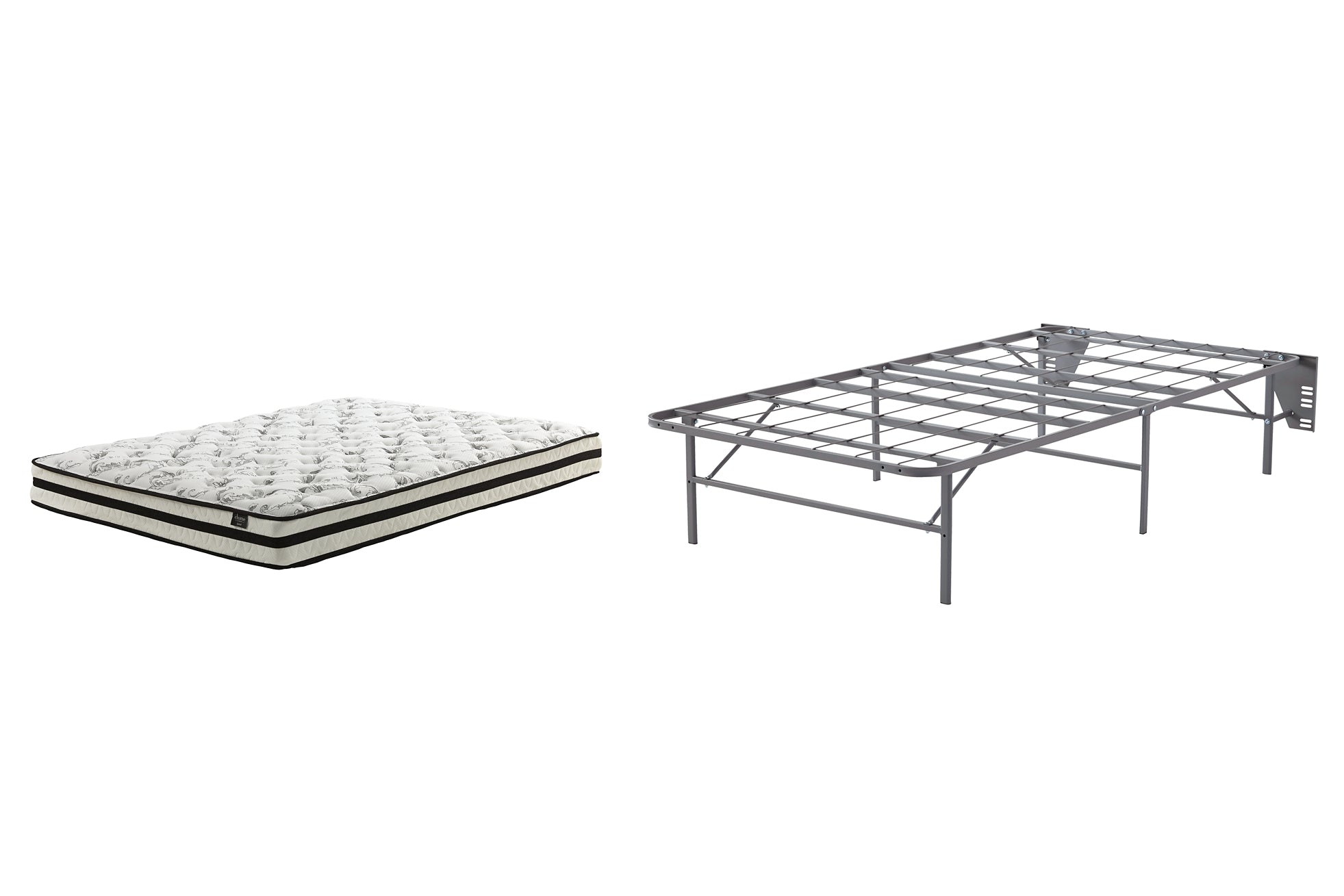 Enjoy endless possibilities for restful sleep with this twin innerspring mattress and foundation set. Feel the support of a truly traditional coil mattress which contours to your body for a traditional feel. High-density quilt foam and pad provide the firm feel you love. The included foundation is an all-in-one support system that takes the place of an ordinary bed frame and box spring. The metal unit sets up quickly and without using any tools, creating a sleep haven with unwavering support. Included brackets attach the riser to a headboard. Even better: The clearance from frame to floor is incredibly spacious and ideal for under-bed storage.