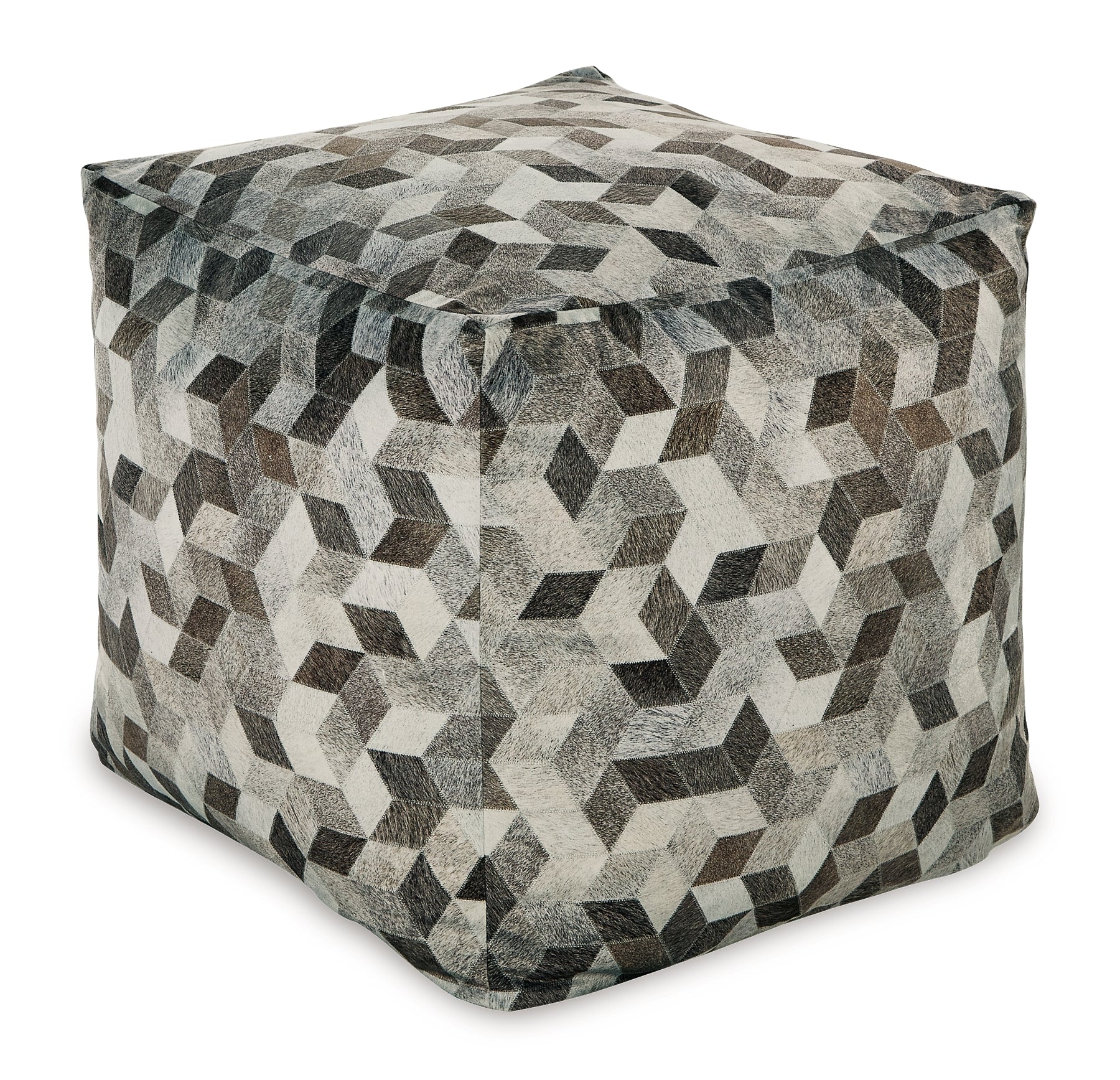 Fall into line with the geometric design of this pouf. Sporting faux hair on hide, this supportive shape in shades of gray and brown invigorates your decor with casually cool flair. Destined to become your favorite footrest, the pouf can also be topped with a tray for an instant end table.