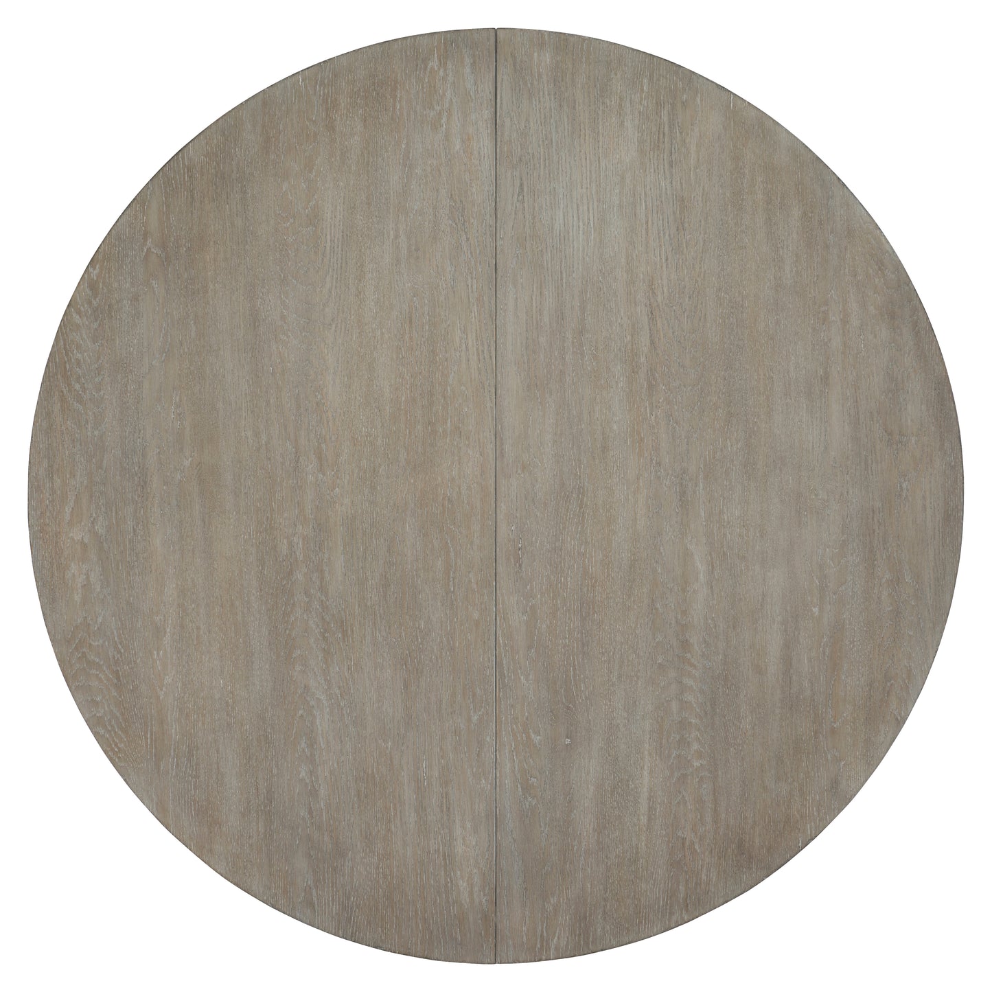 This white oak dining table with a pewter finish is a classic. Its round wood top rests on a wooden base crafted from four legs, each one designed as a half-circle, resting on a bottom wood base. An 18” leaf allows the table to expand, graciously seating even more friends and family members.