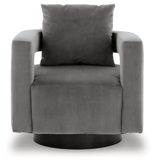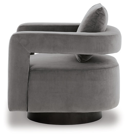 This modern living room accent chair is designed with a unique and fashionable, curved physique featuring a 360-degree swivel metal base. This accent chair is remarkably versatile and will elevate the ambience in any contemporary living room, bedroom or office.