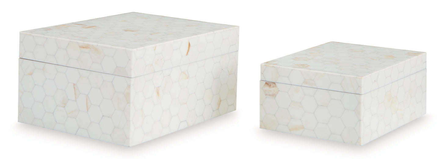 Looking for a casually cool home accent? This set of boxes stacks up beautifully. A hexagonal mosaic design and cream finish bring a laid-back element to your decor. What a stylishly effortless way to refresh your shelves and tabletops.