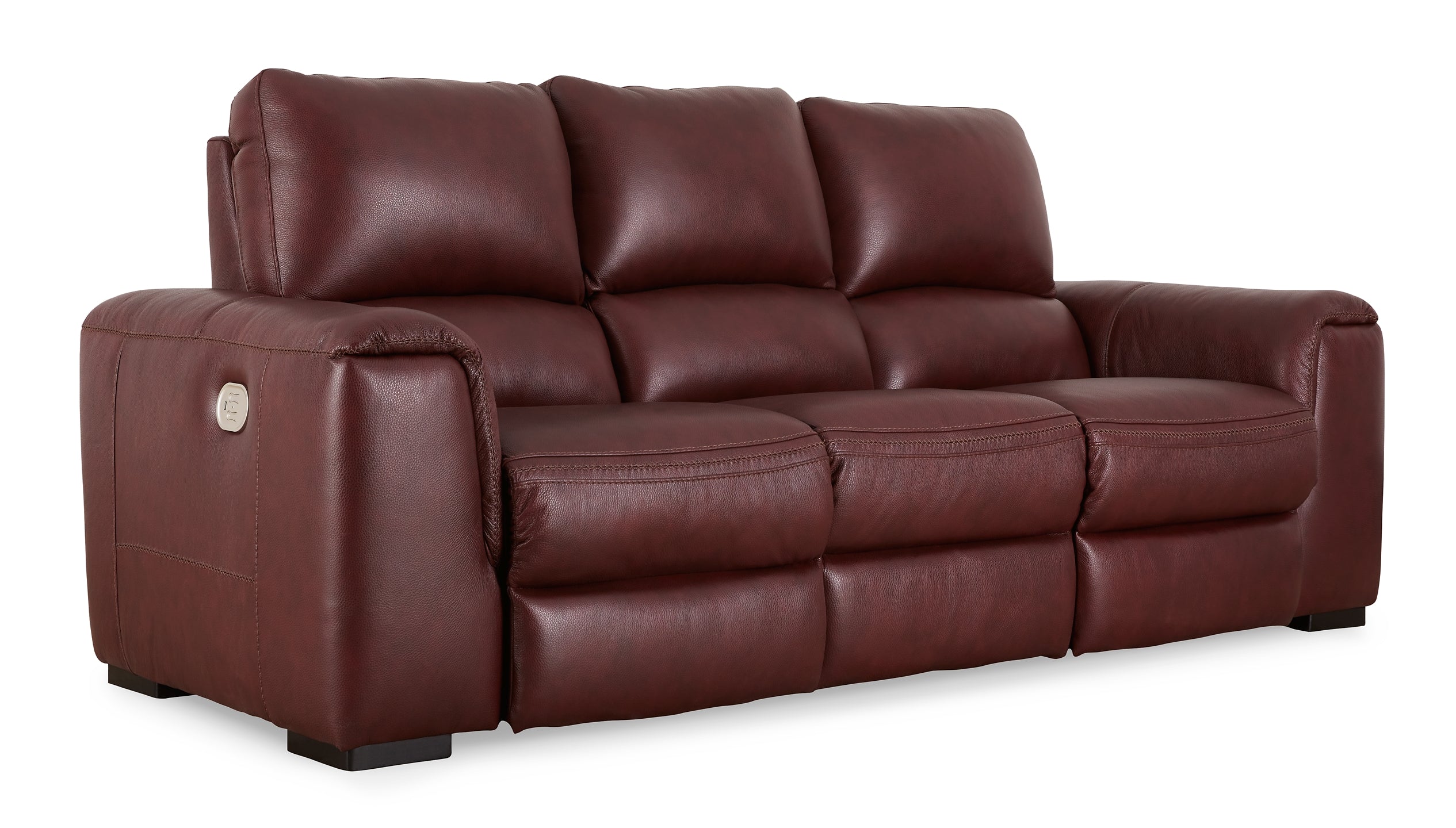 Impressive in scale while keeping an air of refinement, this power reclining sofa stuns with a combination of soft, supple leather and perfectly matched faux leather upholstery in garnet. Sink into the seating area and cater to your comfort with one-touch power reclining and an adjustable headrest. Complete with USB charging, this sofa makes a surefire statement in your contemporary living room.