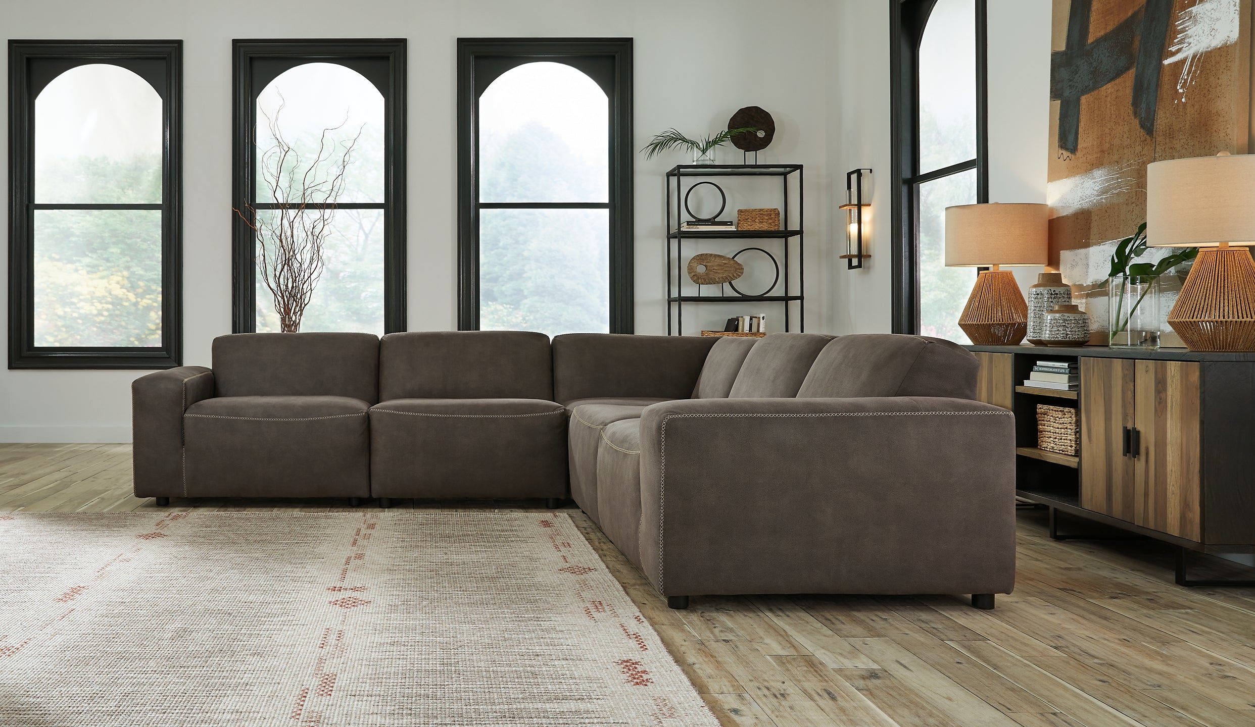 Contemporary fashion meets streamlined design in this seating package. You'll love the comfort and style of the suede-like fabric and how easily its warm gray hue blends with your decor. Best of all, the modular sectional design lets you stage the pieces solo or group them together to suit your mood.