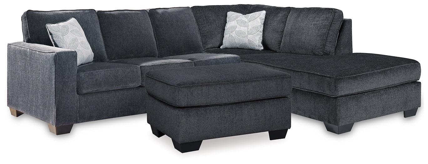 If style is the question, then this sectional is the answer. Sporting clean lines and sleek track arms, the decidedly contemporary profile is enhanced with plump cushioning and a chenille-feel upholstery that's so pleasing to the touch. Sure to play well with so many color schemes, this sectional in slate gray includes a pair of understated floral pattern pillows for fashionably fresh appeal.