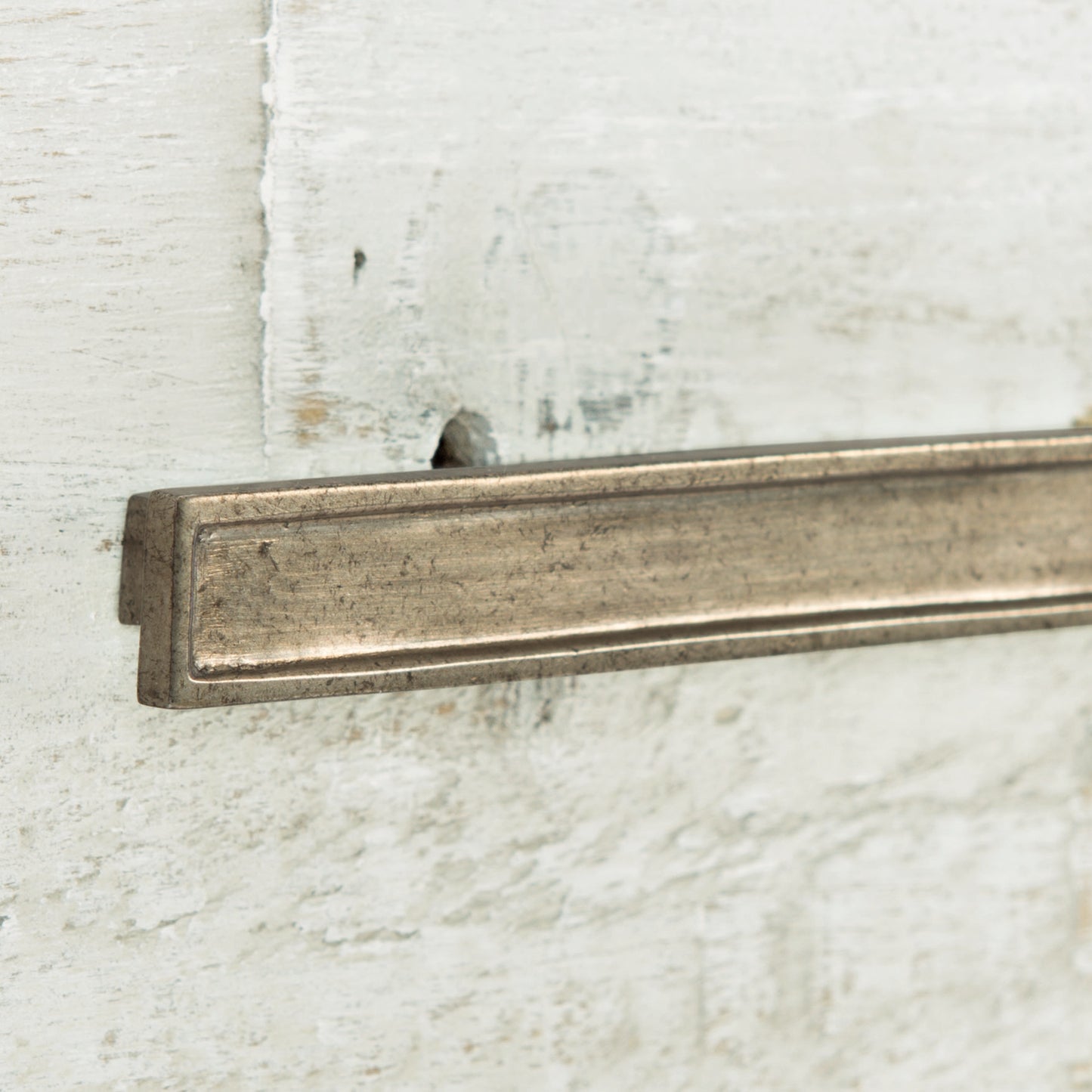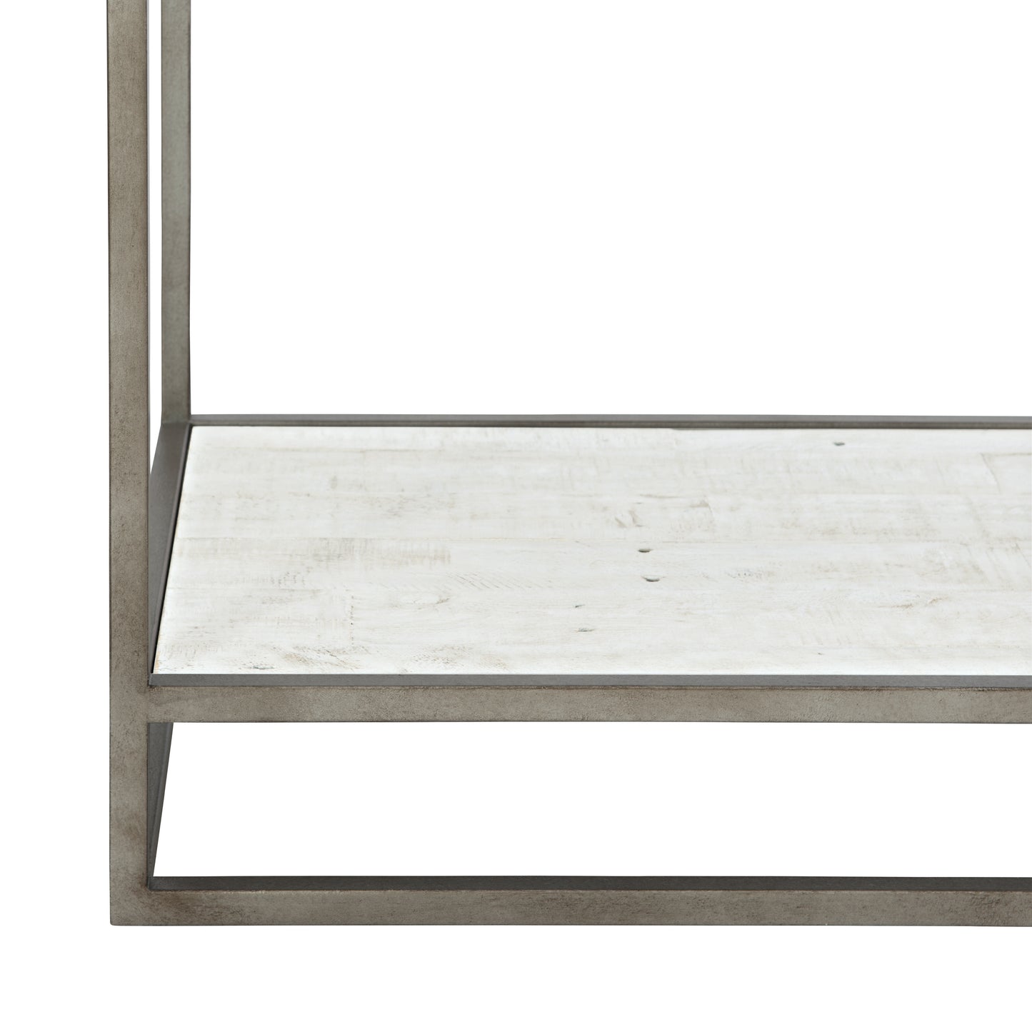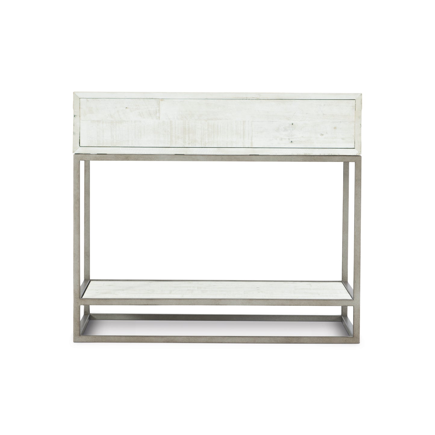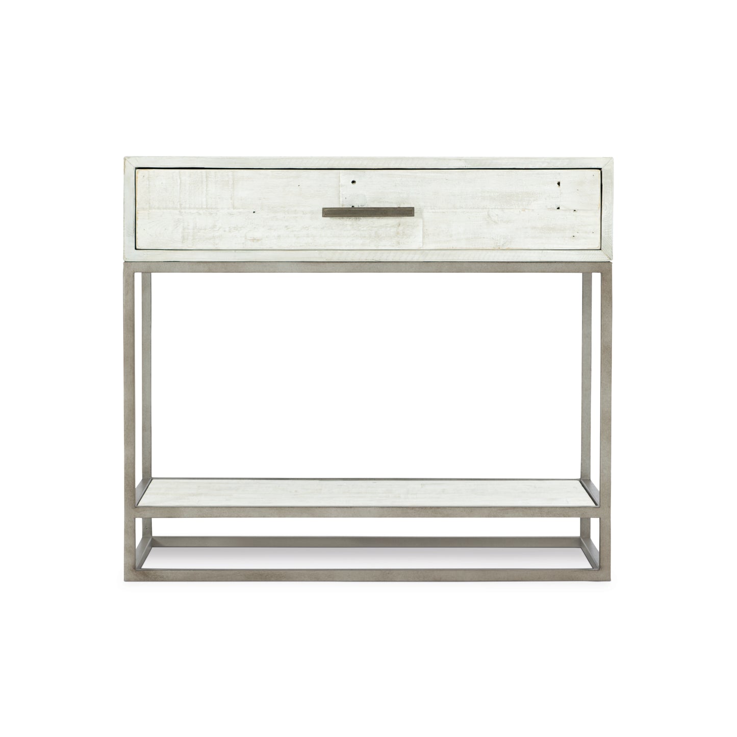 Drawing influence from farmhouse and mid-century design, the Alvar nightstand uses reclaimed wood and rustic metals to create a modern look with a laid-back cool. The drawer box and shelf are crafted from distressed pine in a planked pattern, adding a rugged, organic texture. A Brushed White finish highlights the grain and imperfections in the wood. Finished in glazed silver, the tubular steel base complements the rustic elements with clean lines and a touch of industrial chic.