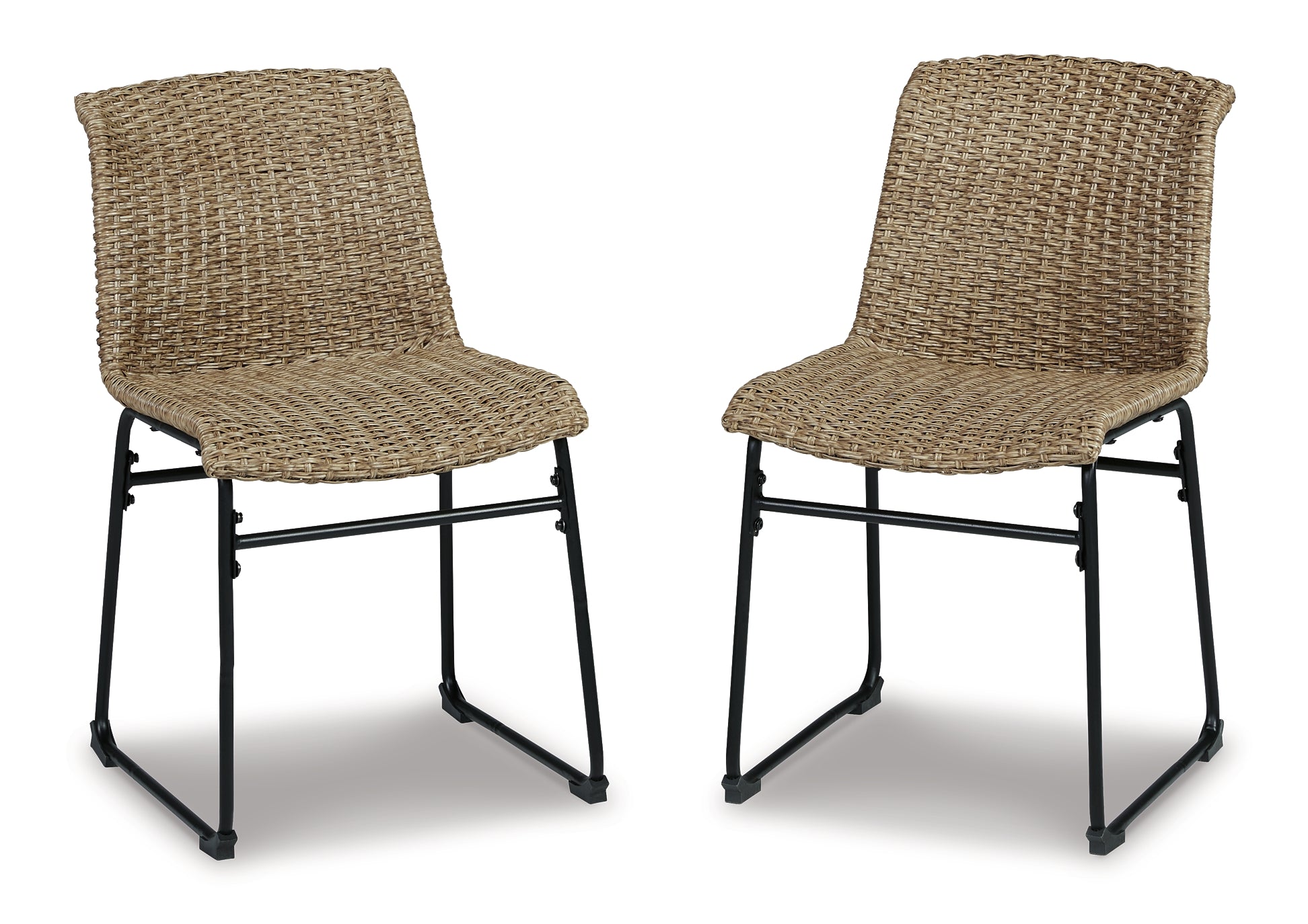 This outdoor seating set establishes the standard for alfresco dining. Made of weather-resistant materials, the table and chairs are ready to withstand the elements. Plus, the two-tone color scheme adds another layer of interest to your outdoor decor.