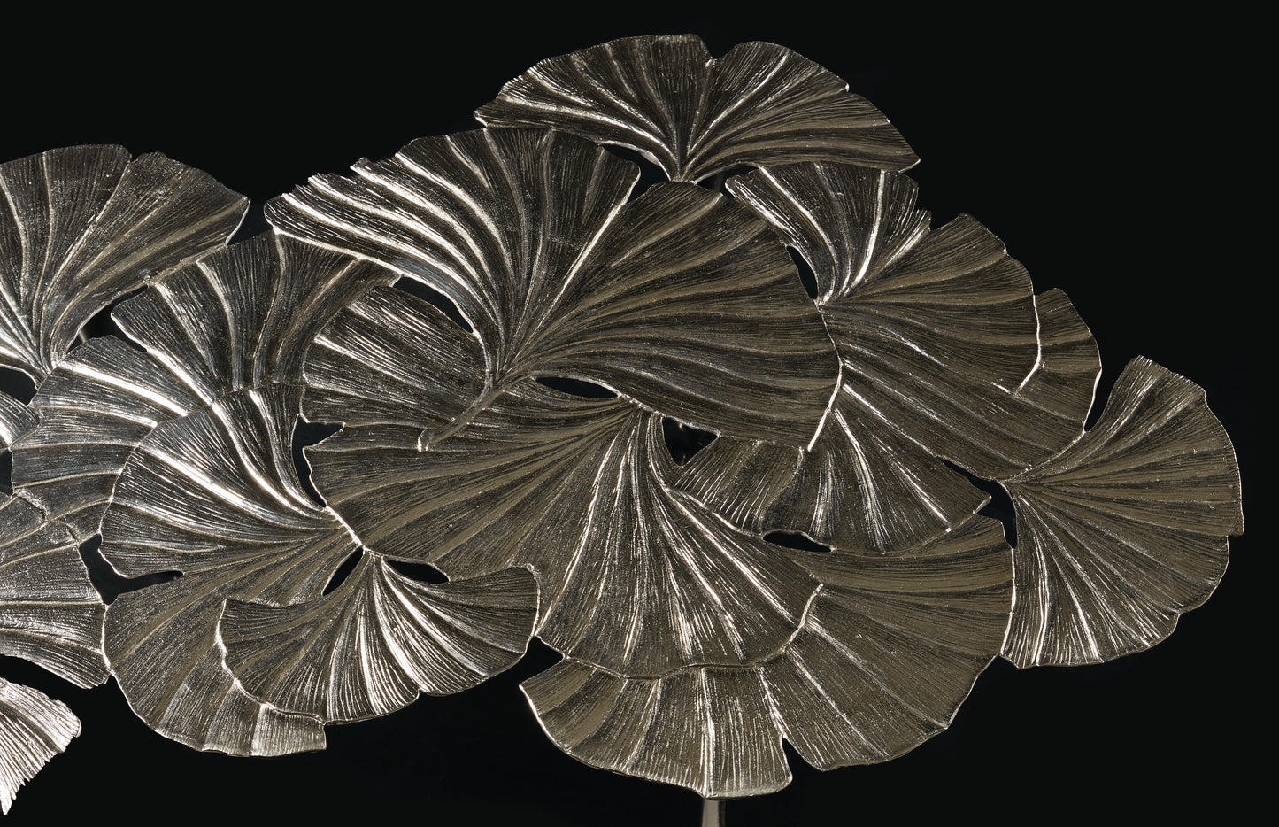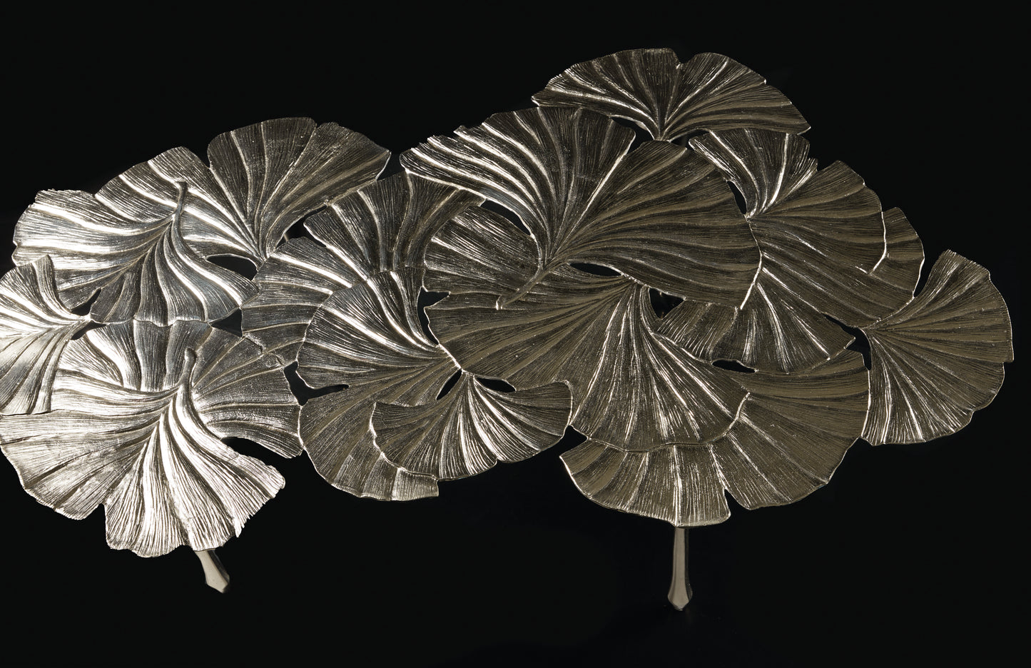 Cast aluminum with gingko leaf patterned top. Satin Nickel finish. Glides.