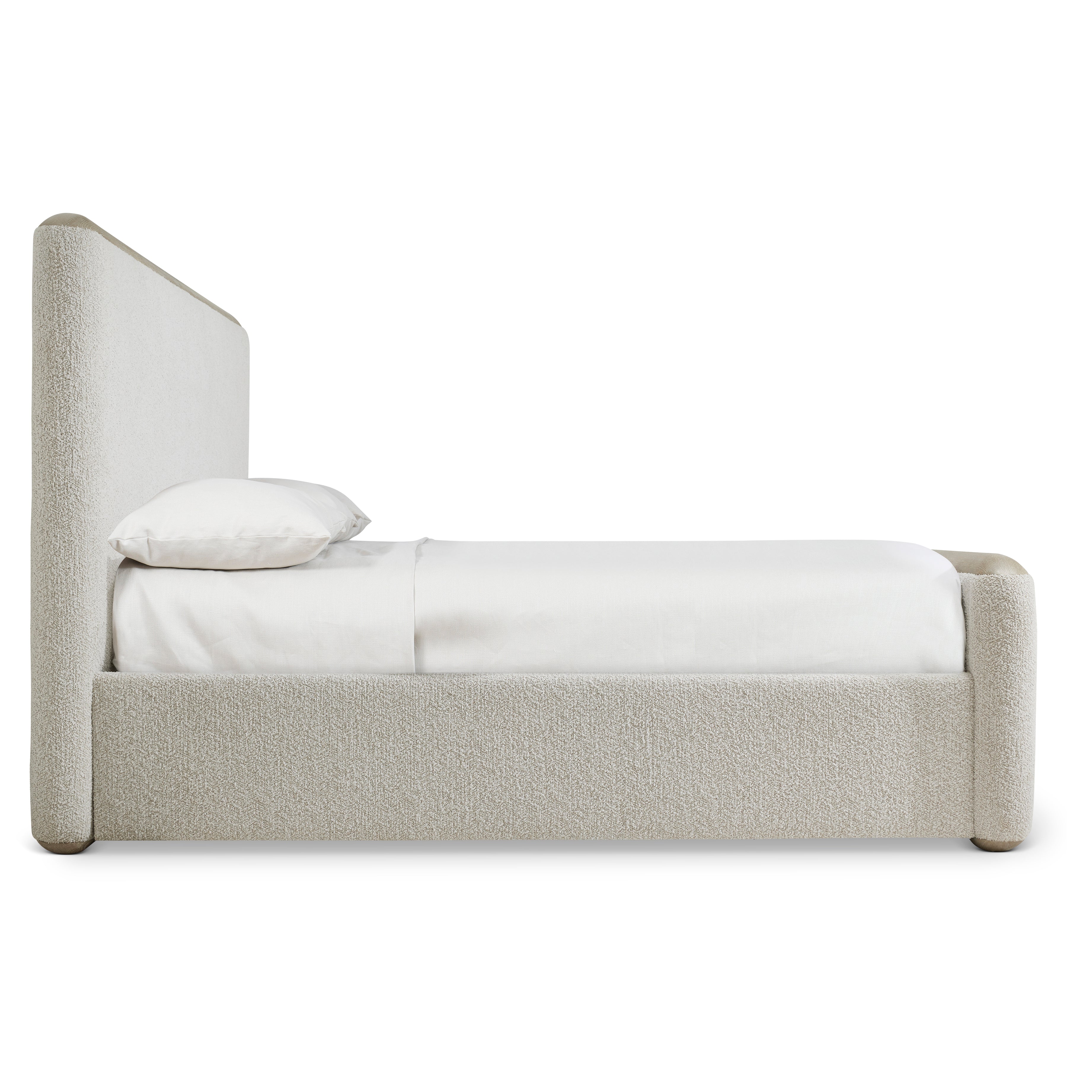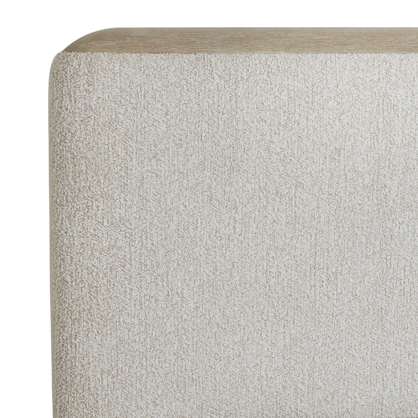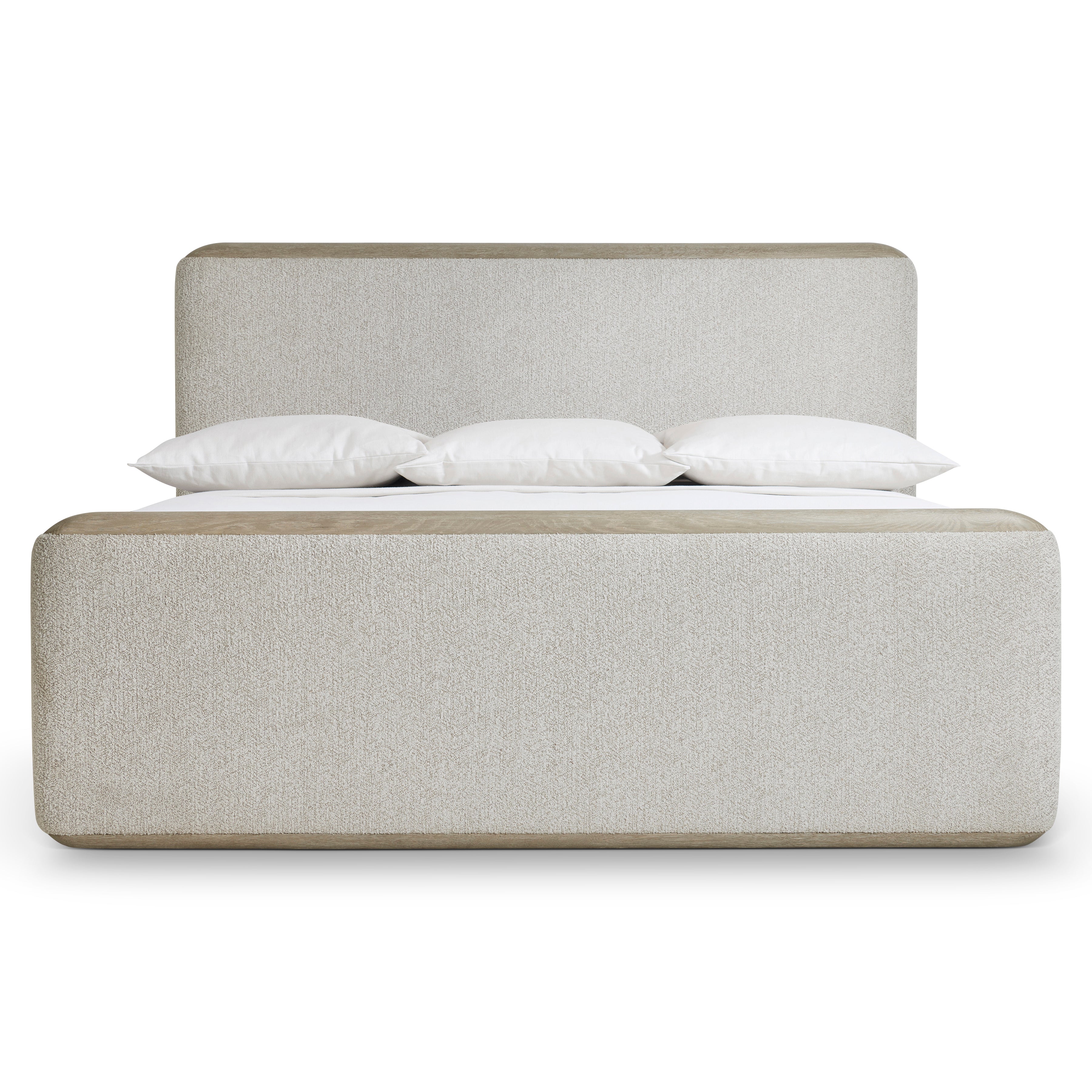 Beautifully rounded and upholstered panels form the headboard and footboard for the Arcadia panel bed. The shapes are highlighted by cast resin cap rails with a woodgrain pattern in Clay finish. Upholstered side panels continue the textural design, giving this bed a serene style.