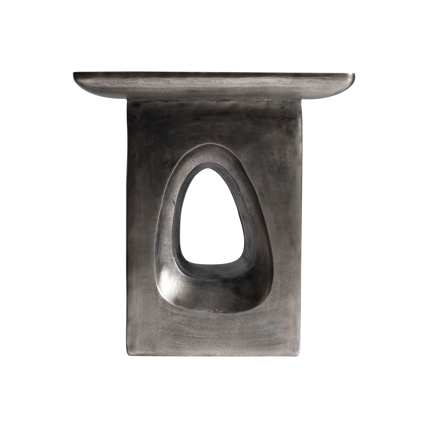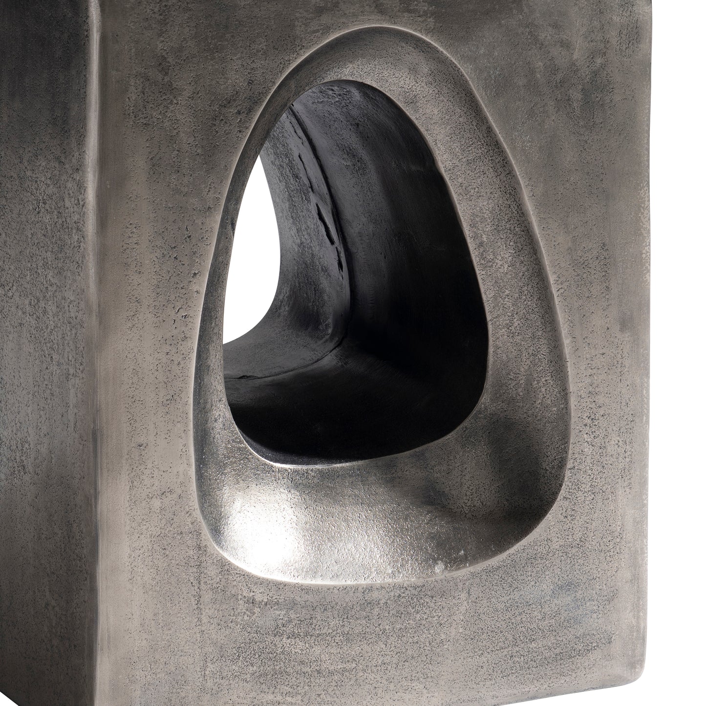 The freeform open base of the Argo side table is crafted of cast aluminum in a Graphite finish. The straight lines of the base support a smooth square top for a beautiful, modern organic style.