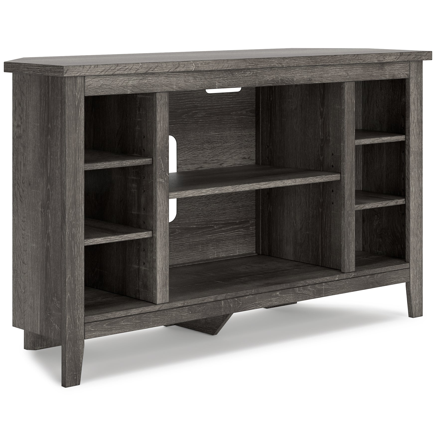 With its replicated weathered oak finish and authentic charm, this corner TV stand is right in tune with your relaxed approach to high style. Beautifully shaped to nestle into any corner, it’s well equipped with adjustable and fixed shelving, a fireplace option (sold separately) and cutouts for wire management. What a mastery in modern farmhouse living for small spaces.
