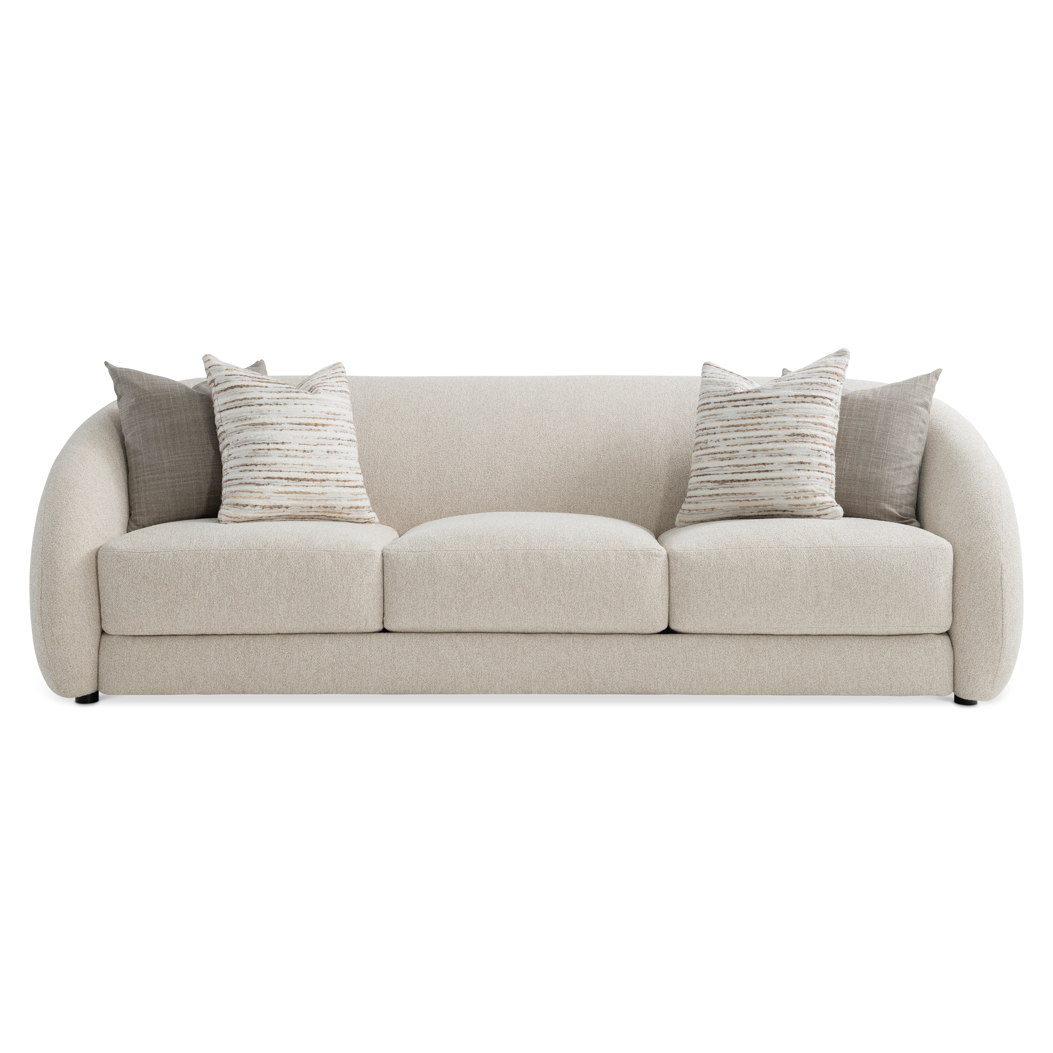 Forming one continuous curvaceous line, the back and arms of the Austen sofa create a modern silhouette. The tight back creates a streamlined structure, while the three deep cushions plus curated throw pillows offer a plush, comfortable seat. It's an elegant and tailored style with a graceful design.