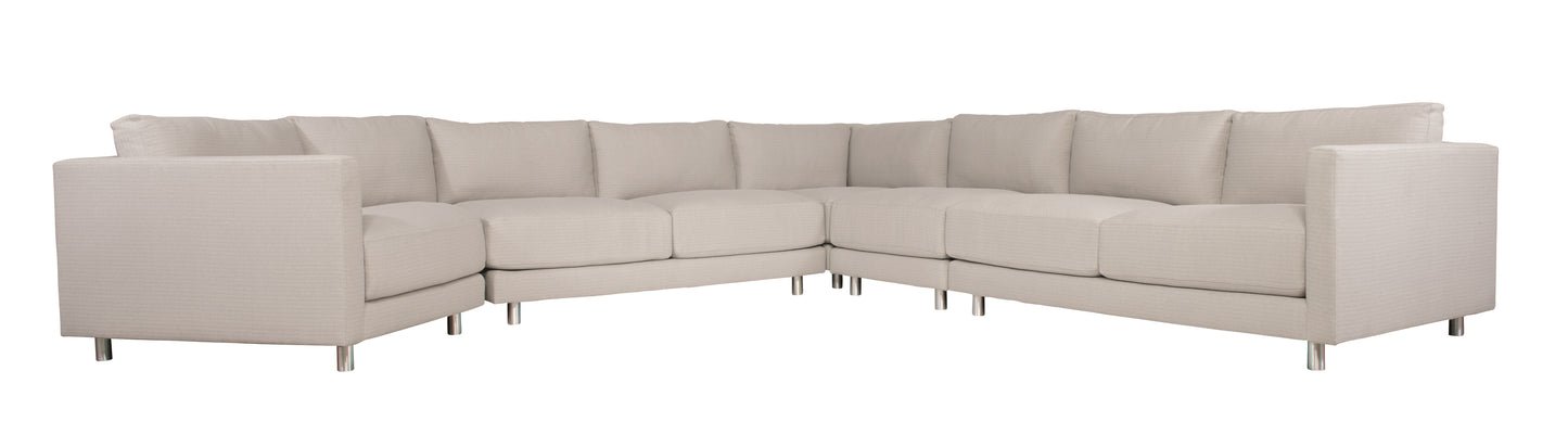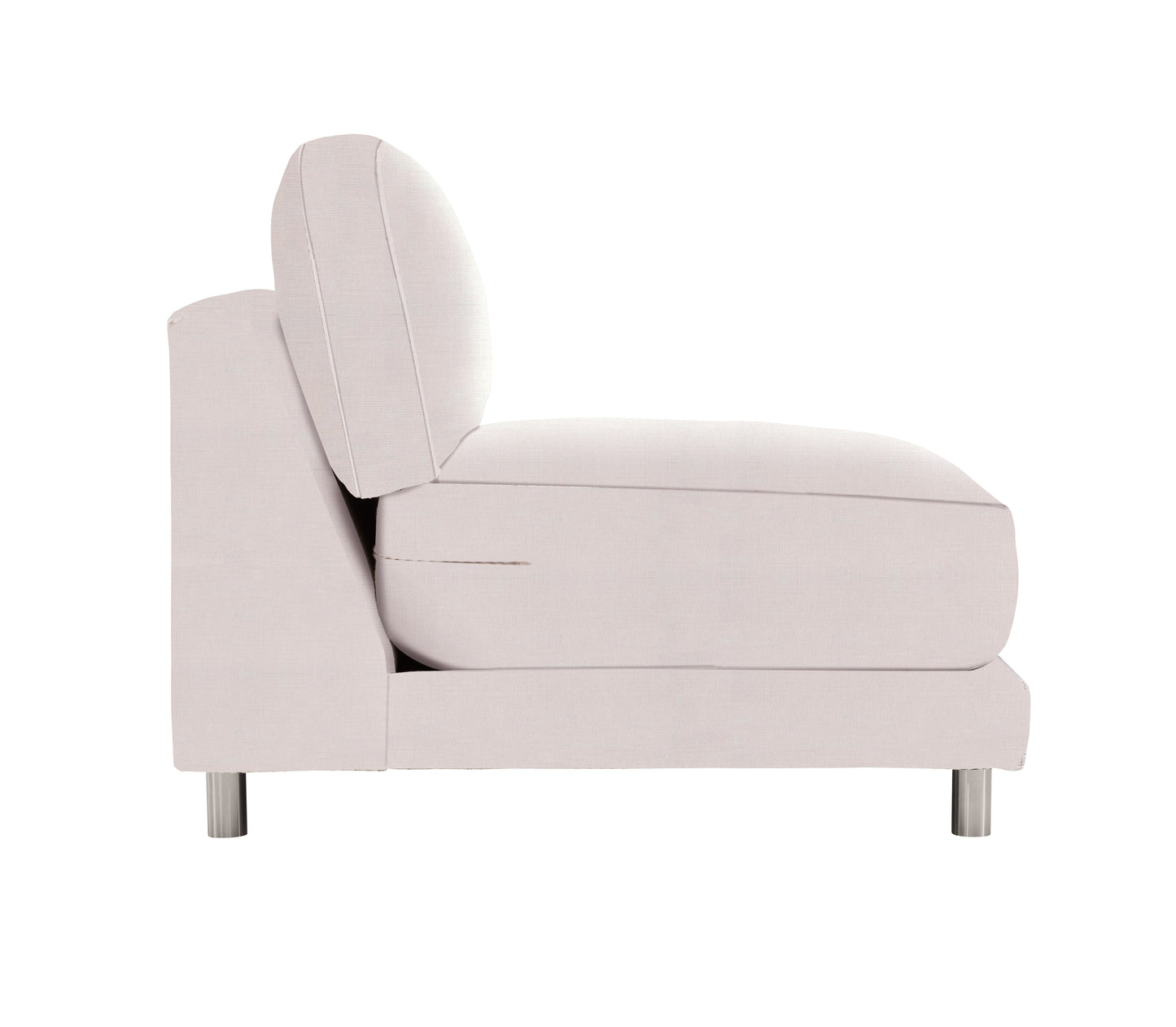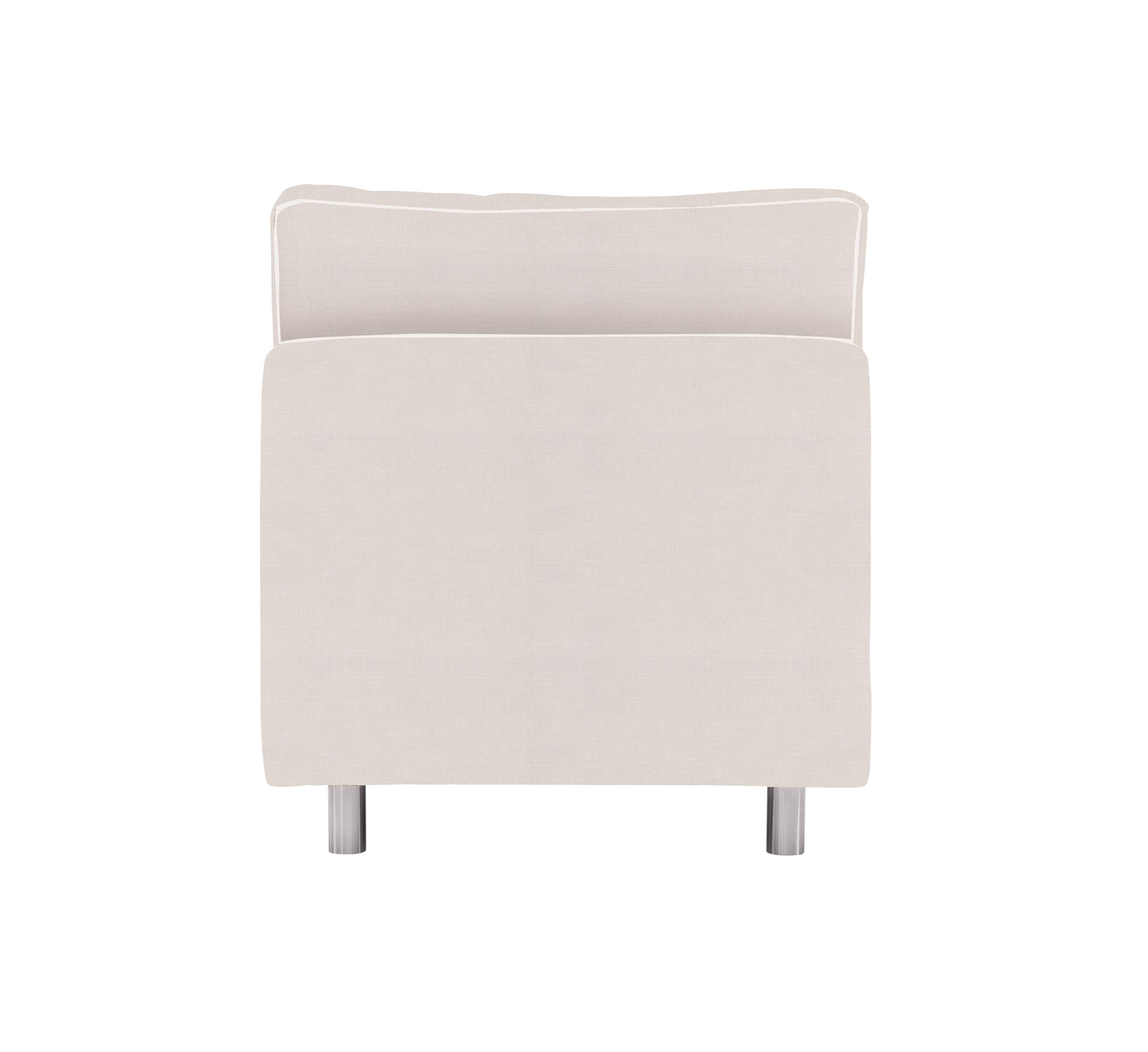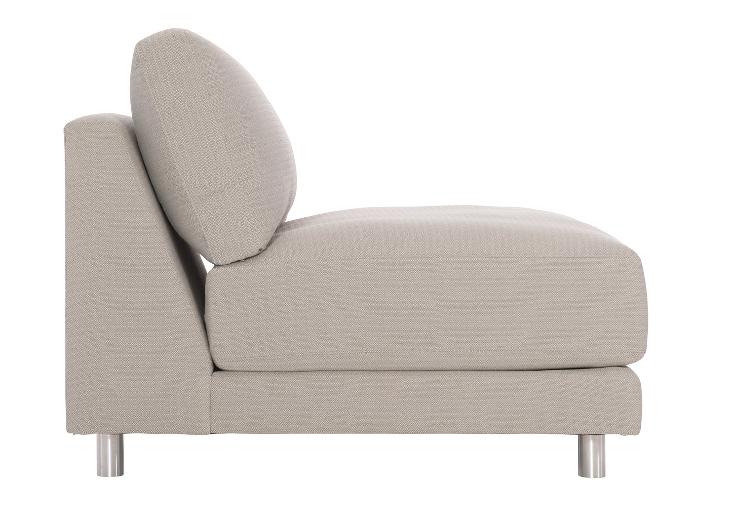 Bernhardt Exteriors is characterized by exceptional luxury, ultimate comfort and elegant design. The clean, modern design of the Avanni armless chair features a linear, low-profile frame and cylindrical aluminum legs. Plush cushions create a soft, inviting look.