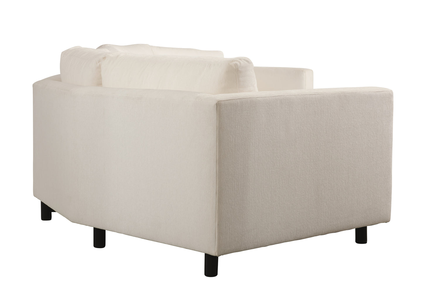 Bernhardt Exteriors is characterized by exceptional luxury, ultimate comfort and elegant design. The clean, modern design of the Avanni left arm cuddler features a linear, low-profile frame, a track arm and cylindrical aluminum legs in matte black finish. Plush cushions create a soft, inviting look.