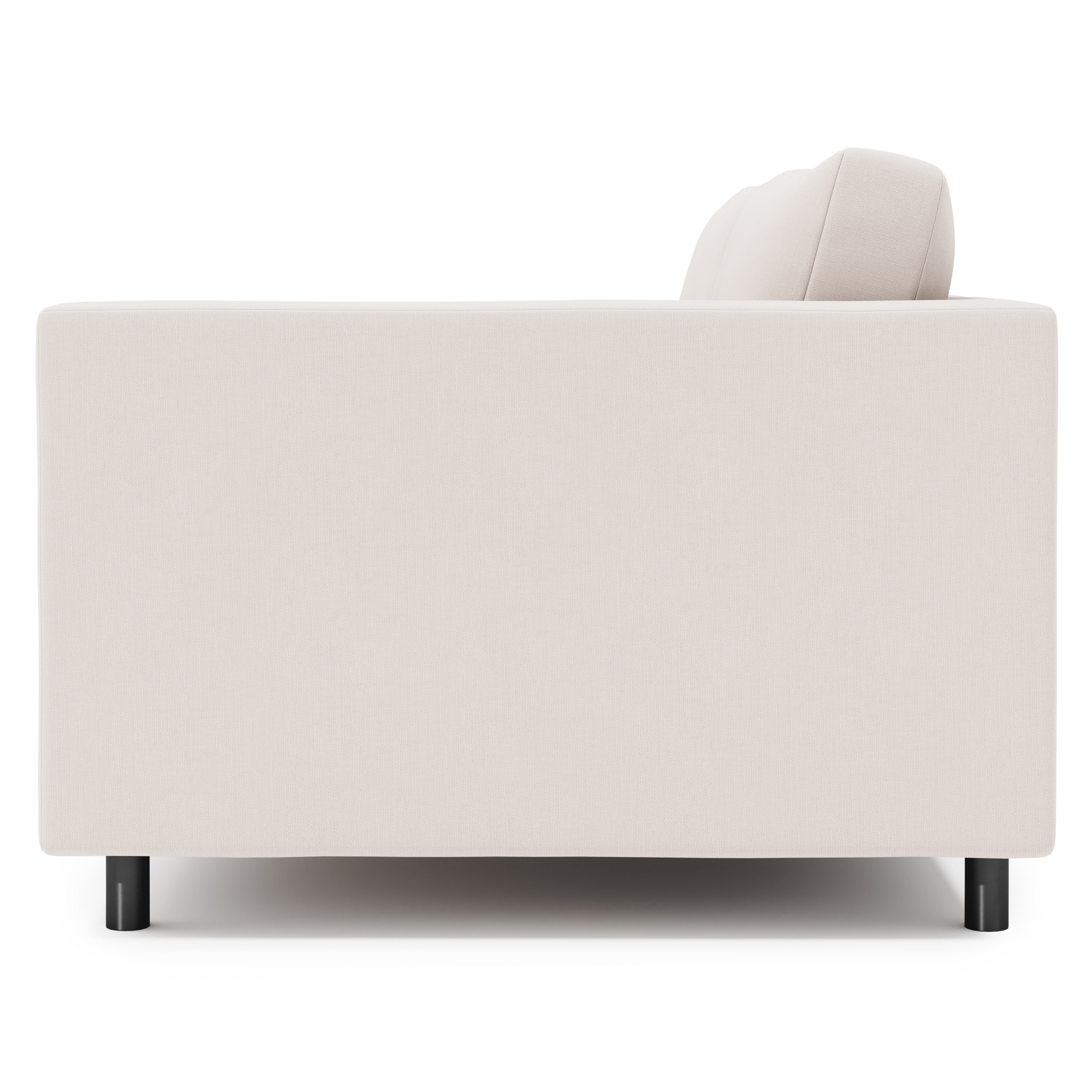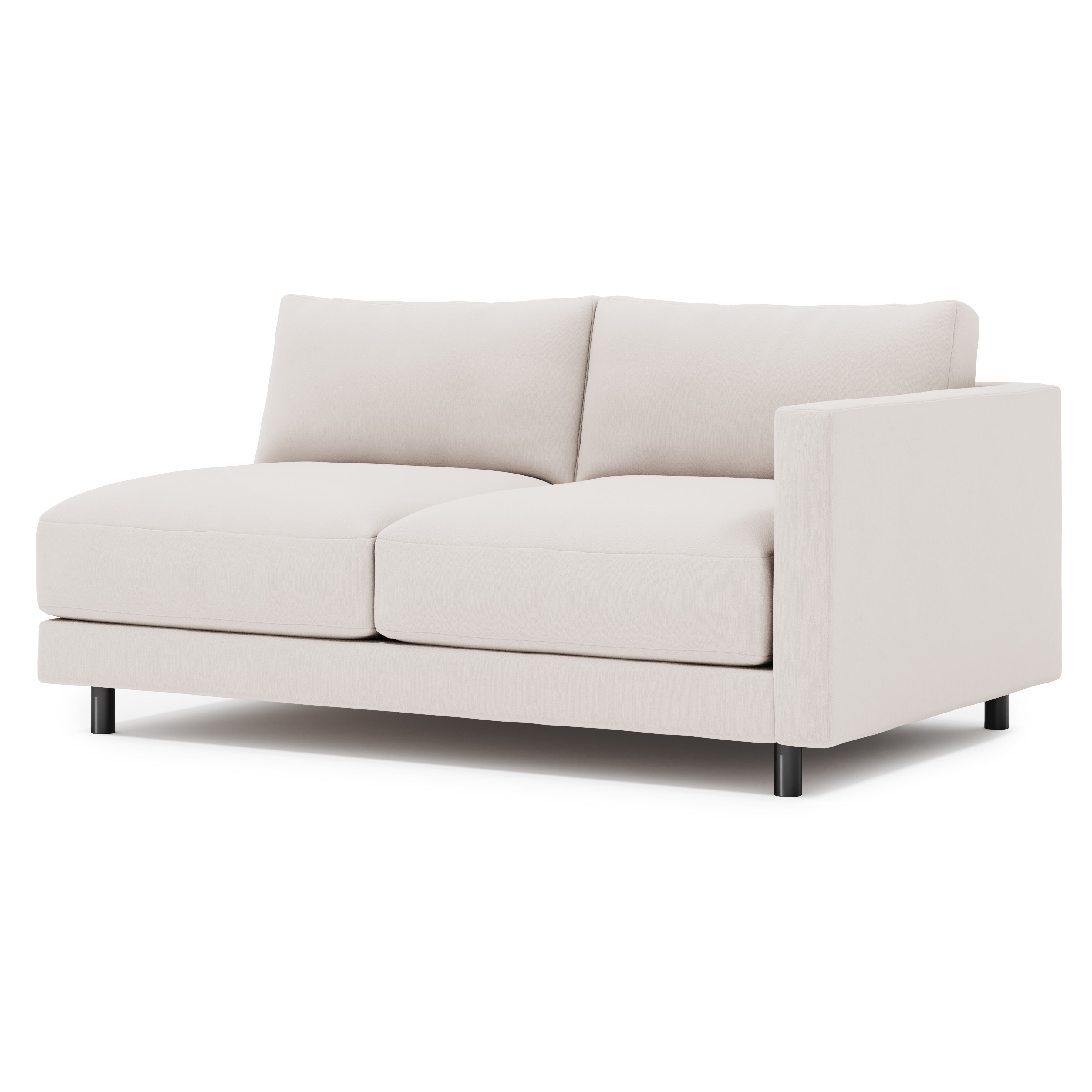 Bernhardt Exteriors is characterized by exceptional luxury, ultimate comfort and elegant design. The clean, modern design of the Avanni right arm loveseat features a linear, low-profile frame, a single track arm and cylindrical aluminum legs in matte black finish. Plush cushions create a soft, inviting look.