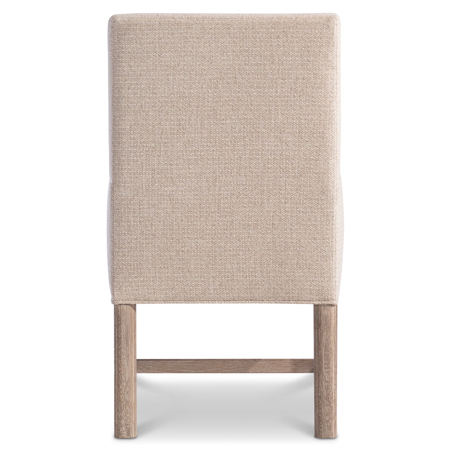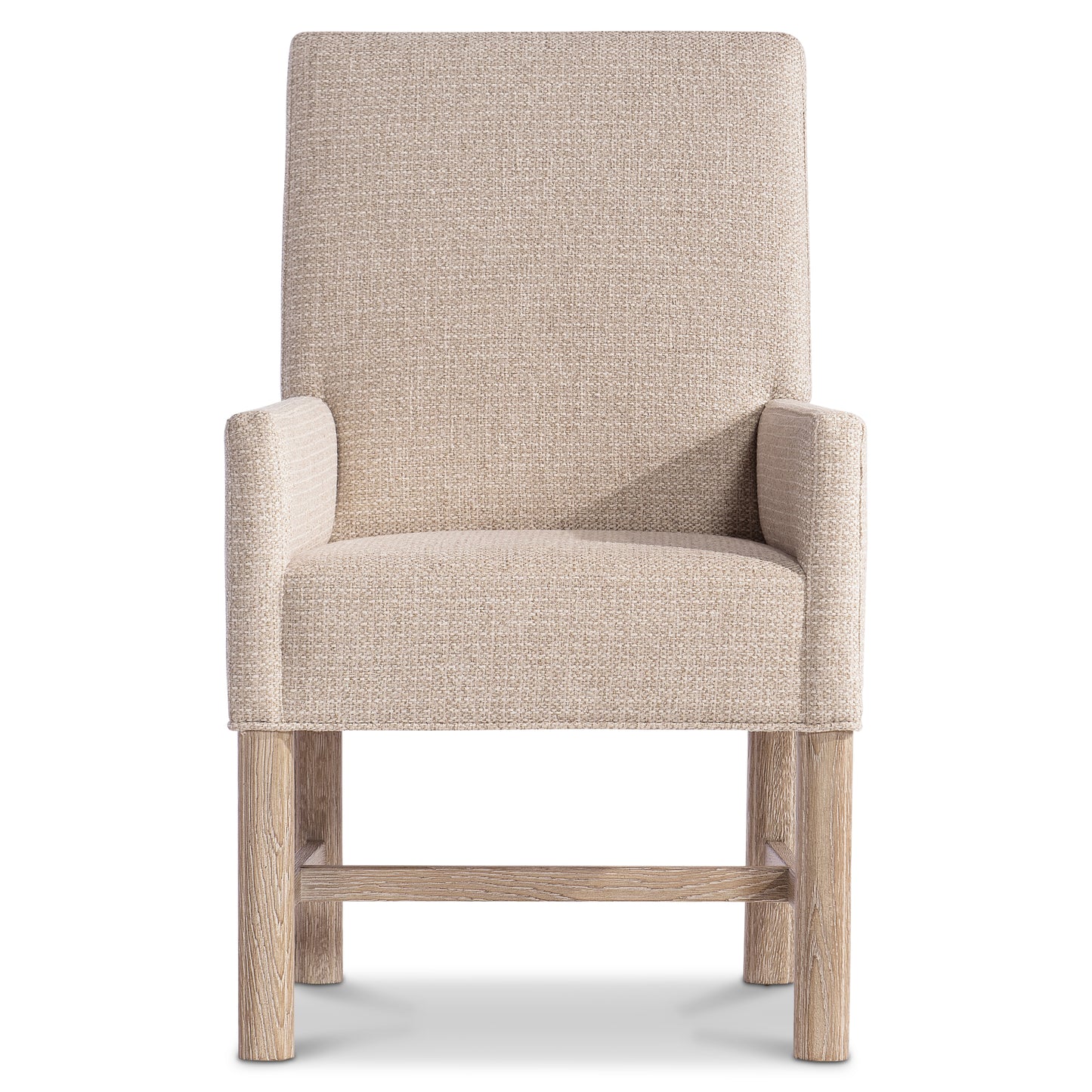 A traditional silhouette is defined by gorgeous details and clean lines in the Aventura arm chair. The straight forms and corners of the seat and back are uniquely complemented with textured round legs in a Marcona finish.