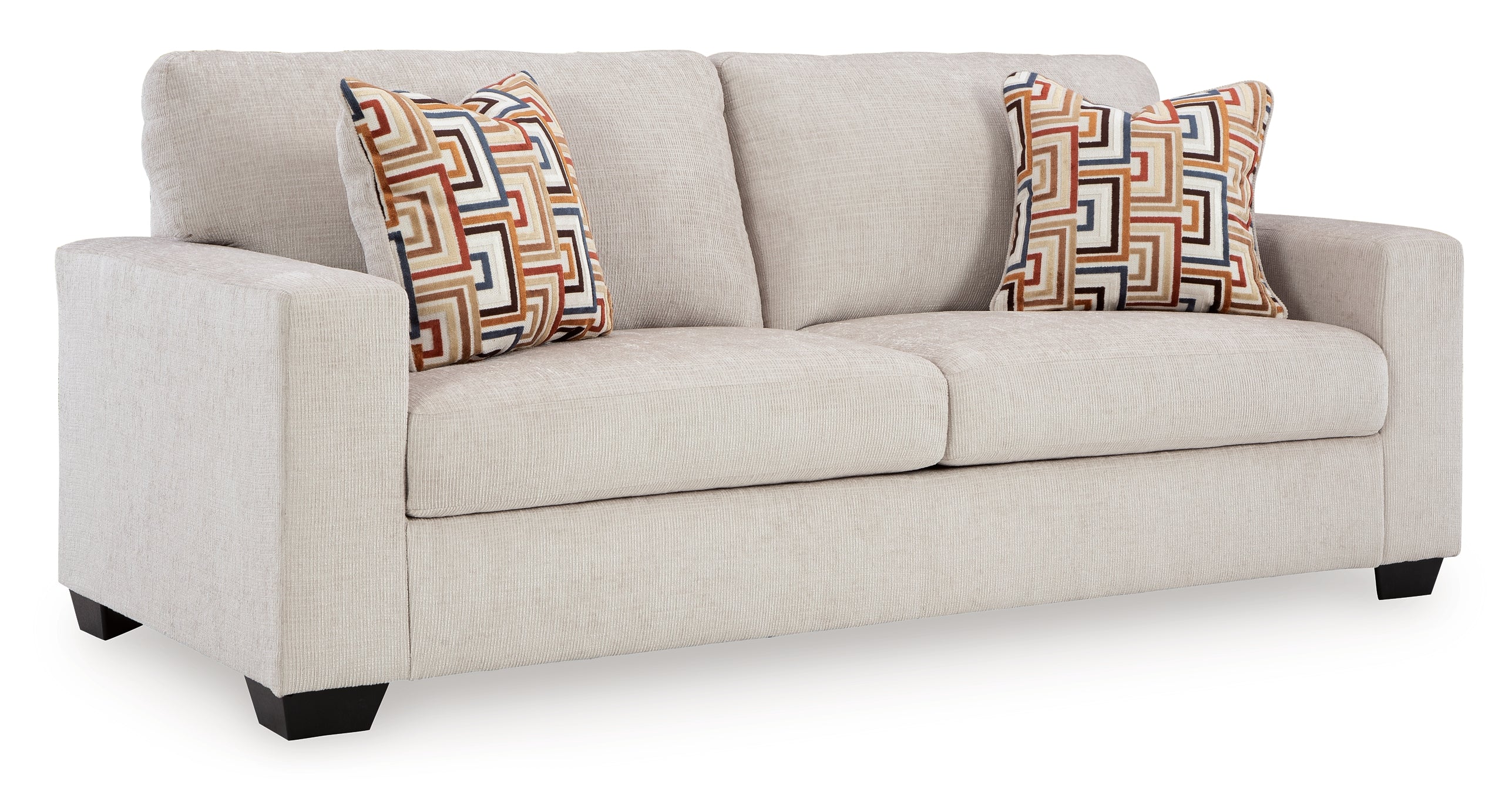 Looking to make a simply chic statement with color? Liven up your living room with this sofa. Its trend-right light neutral upholstery is a perfect blank canvas for adding pops of color. Bold and eclectic accent pillows complete the look. Pairing posh style with everyday comfort, this piece is a welcome addition to contemporary spaces.