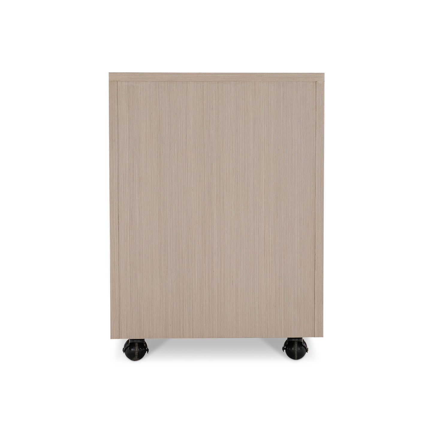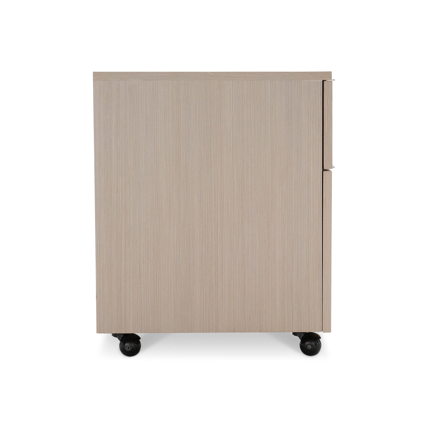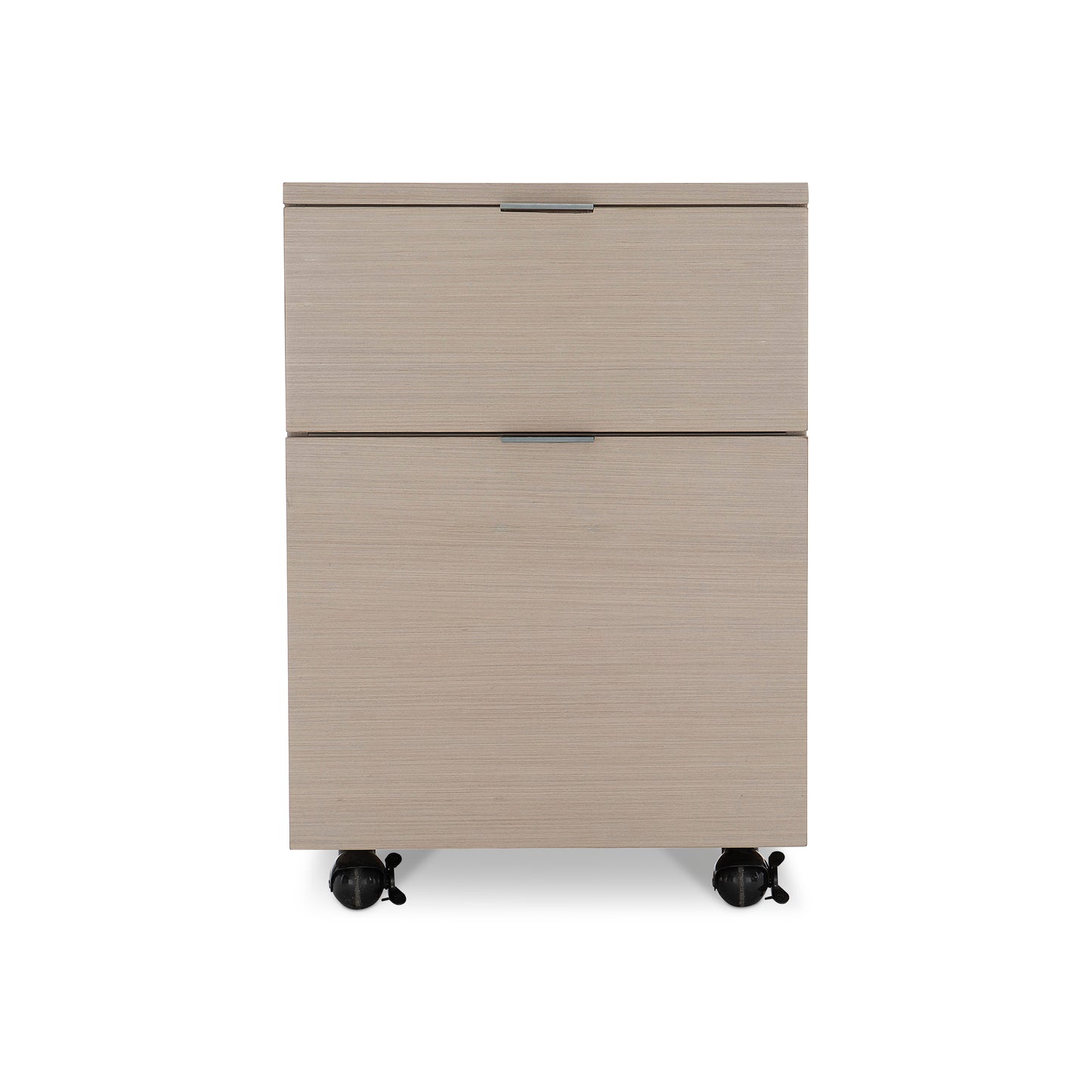 The Axiom file cabinet provides ample storage behind a no-fuss facade, making it highly functional as well as stylish. With two spacious drawers, it helps keep a workspace organized and uncluttered. Sleek metal hardware and a linear wood grain in Linear Grey finish create a look of subtle sophistication.