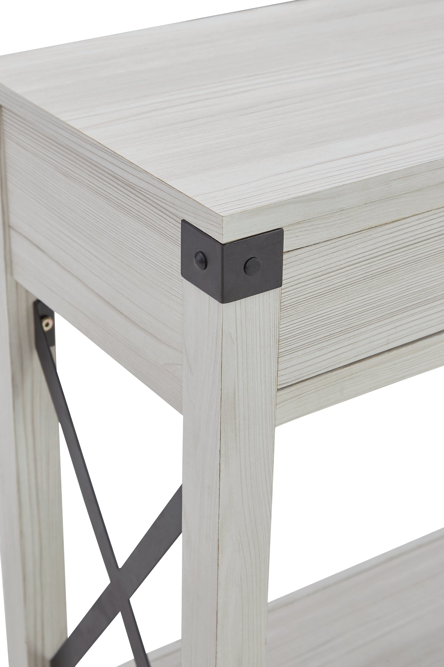 If you’re going for a simply striking addition to your space, this console table really makes a statement, creating an openly elegant place to showcase your style. With its replicated vintage barn wood effect in a subtly whitewashed color tone, this piece is decidedly understated yet rich with character. Metal crossbuck accents give it just enough flair.