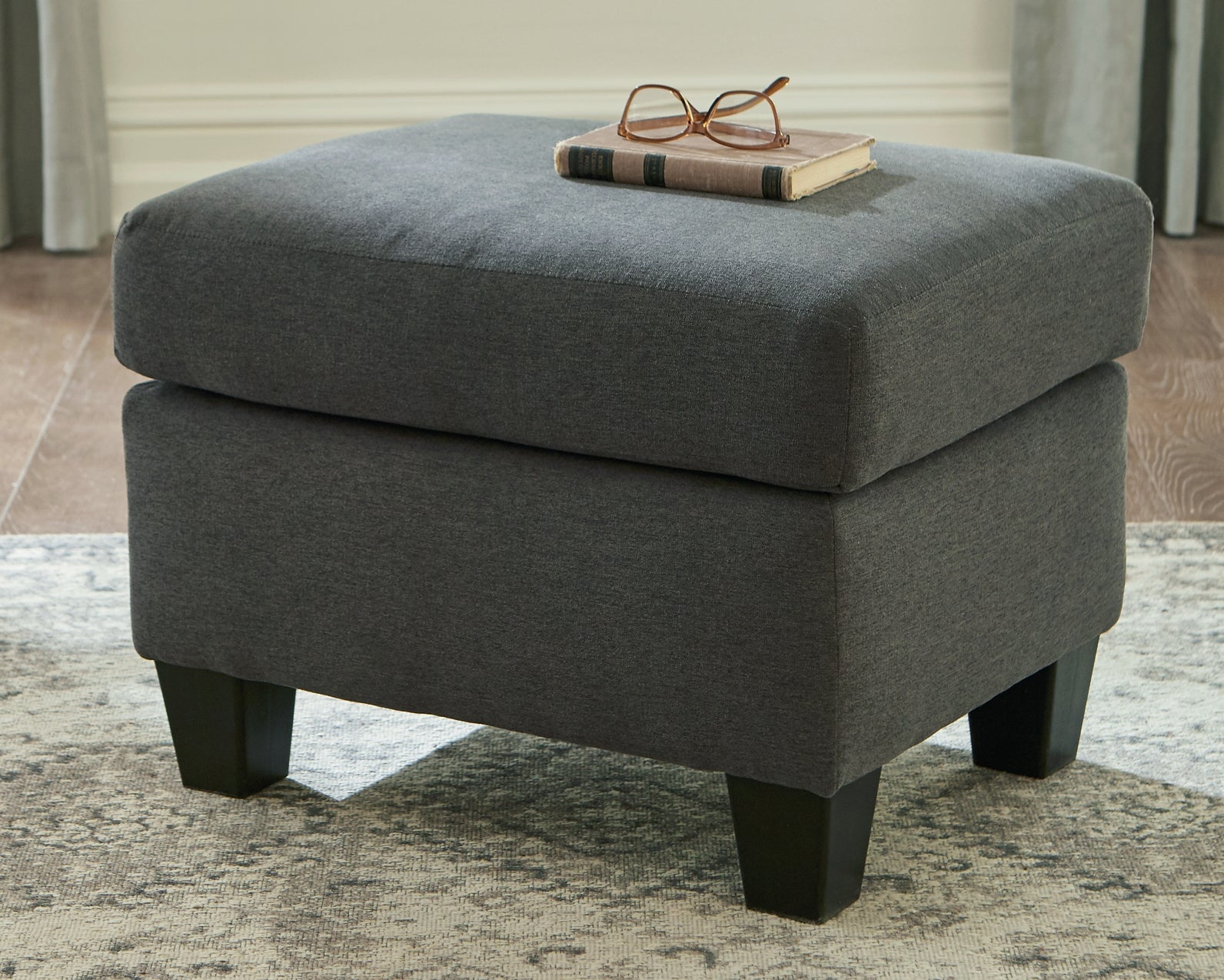 Dressed to impress, this ottoman is an above-and-beyond choice for your fashionable abode. Wrapped in a soft flatwoven charcoal fabric that’s naturally on trend, this designer ottoman is sure to suit contemporary spaces and modern farmhouse places—and look right at home with classic and eclectic furnishings. That’s the beauty of a great transitional piece of furniture. That’s the beauty of the Bayonne ottoman.