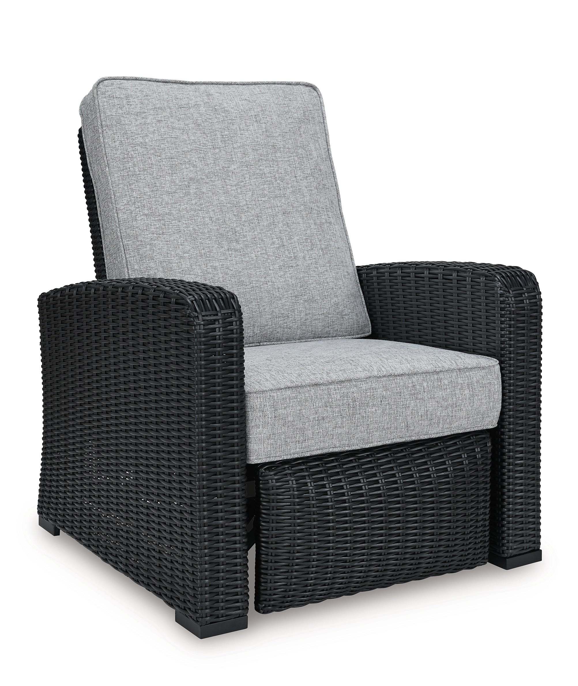 Sporting an easy-on-the-eyes elegance, this recliner chair elevates the art of alfresco living. Beautiful and durable enough for indoor and outdoor use, this high-style/low-maintenance chair entices with plush, removable cushions wrapped in Nuvella® fabric that’s a breeze to keep clean. Simply push back a bit and go from fully upright to stretched out in a matter of seconds.
