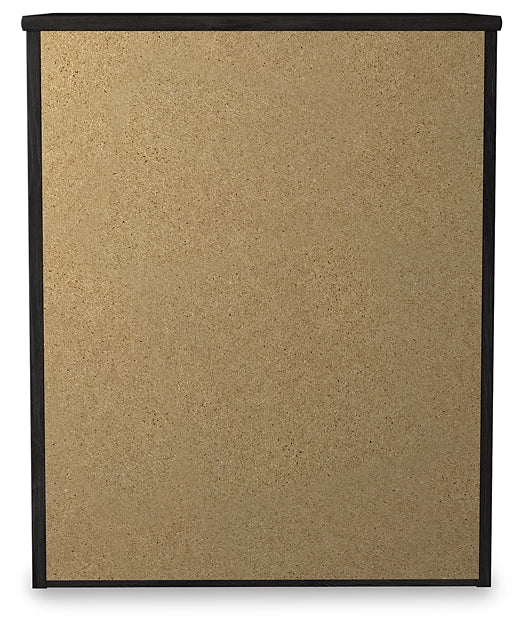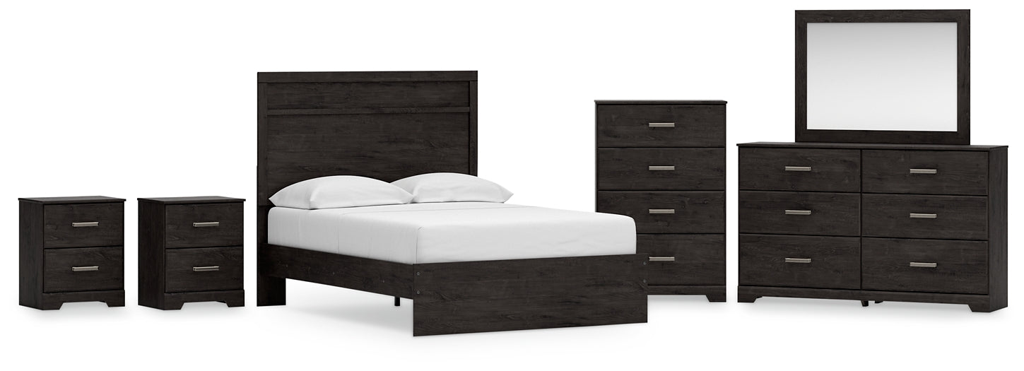 With its clean-lined look and modern attitude, this bedroom package is a fresh style awakening. A warm charcoal hue over replicated oak grain easily complements other furniture finishes. Smooth drawer fronts with antiqued pewter-tone handles complete the aesthetic.