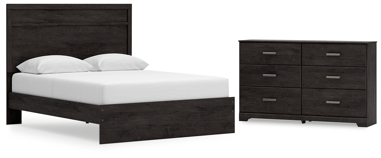 With its clean-lined look and modern attitude, this bedroom package is a fresh style awakening. A warm charcoal hue over replicated oak grain easily complements other furniture finishes. Smooth drawer fronts with antiqued pewter-tone handles complete the aesthetic.