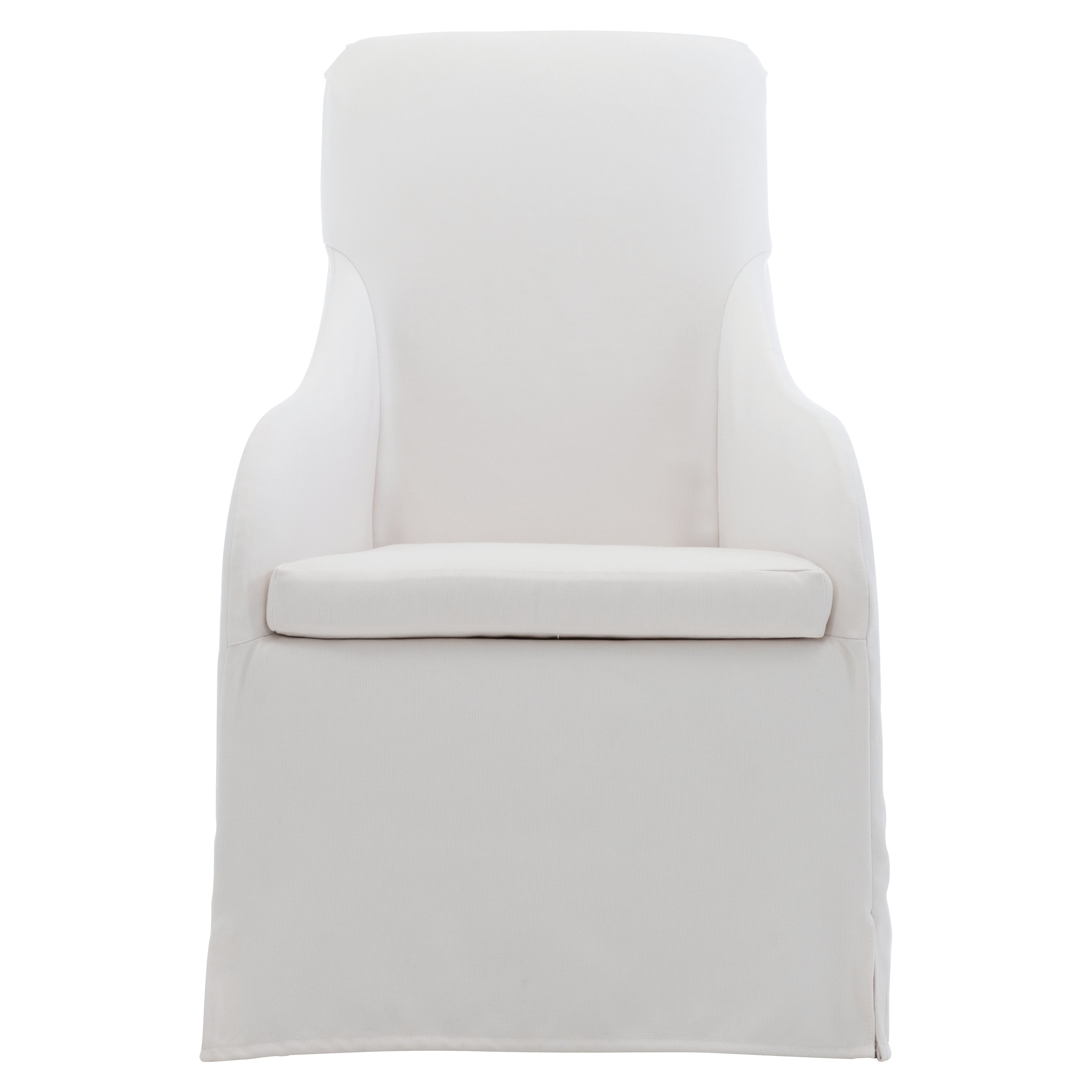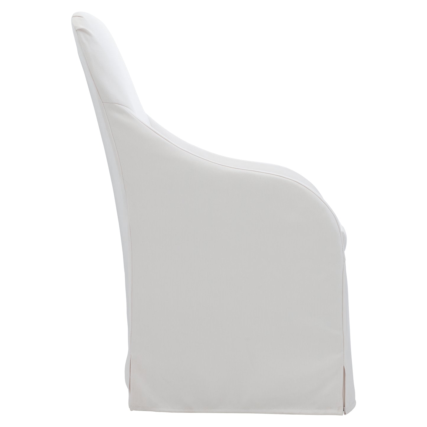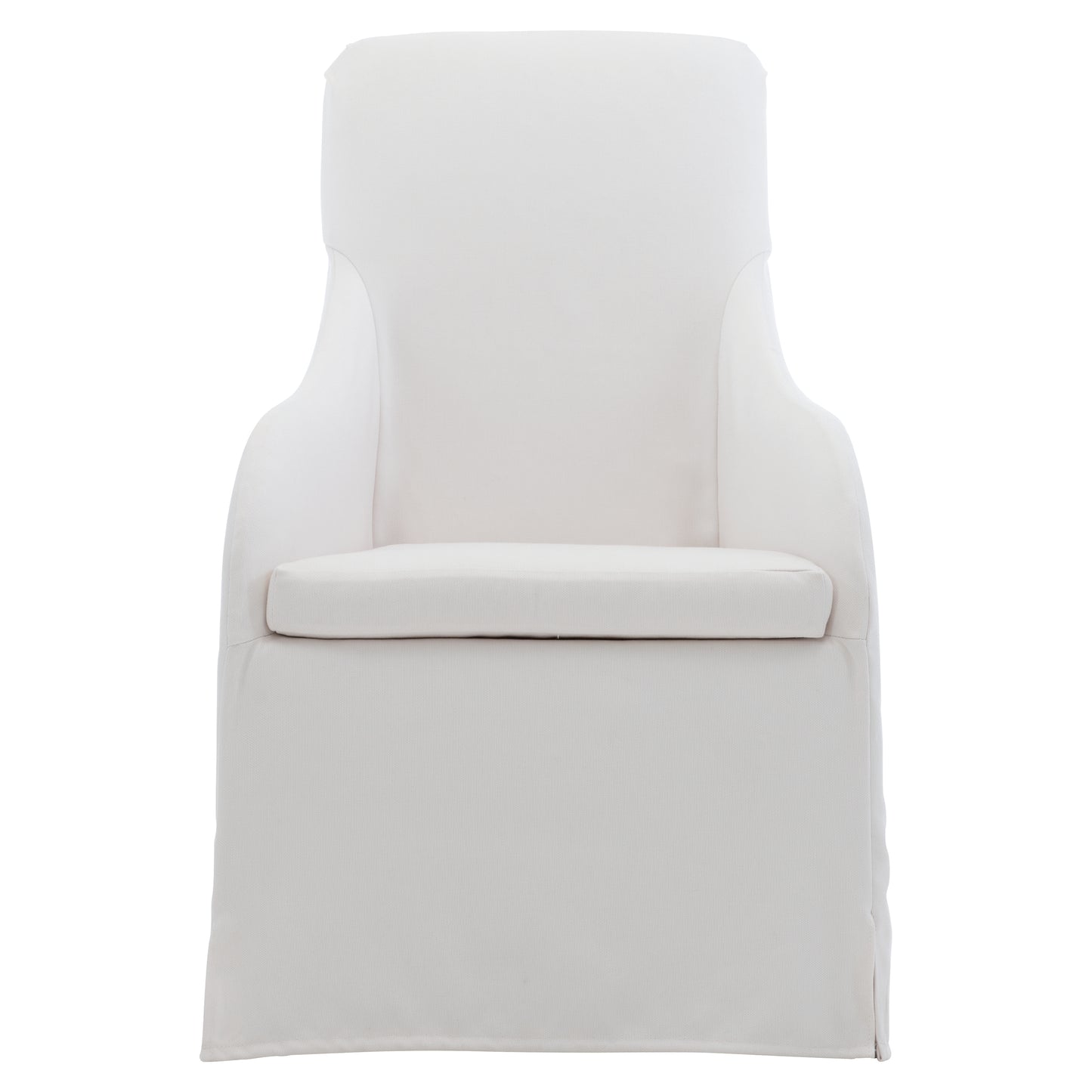 Bernhardt Exteriors is characterized by exceptional luxury and elegant design. The Bellair dining chair is both sophisticated and sumptuous. A waterfall skirt lends an elegant slipcover look, while a high back and sloping arms create a dashing silhouette. A loose seat cushion is a more casual touch, contributing to the refined yet relaxed feel of this luxurious all-weather chair.