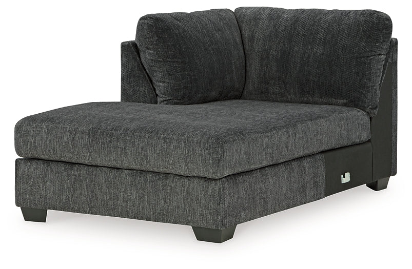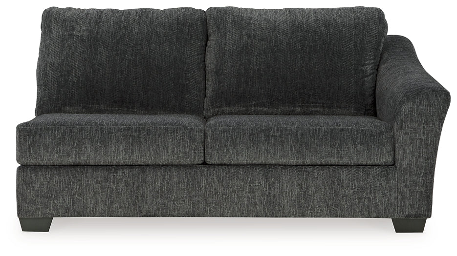 Bring fashionable function to the forefront with this sectional with chaise. A transitional arm design adds flair to the frame, incorporating subtle visual interest into the otherwise clean-lined silhouette. Dress it up or down. In a richly versatile neutral, this sectional appeals to a variety of style personalities. Oversized swivel accent chair included.