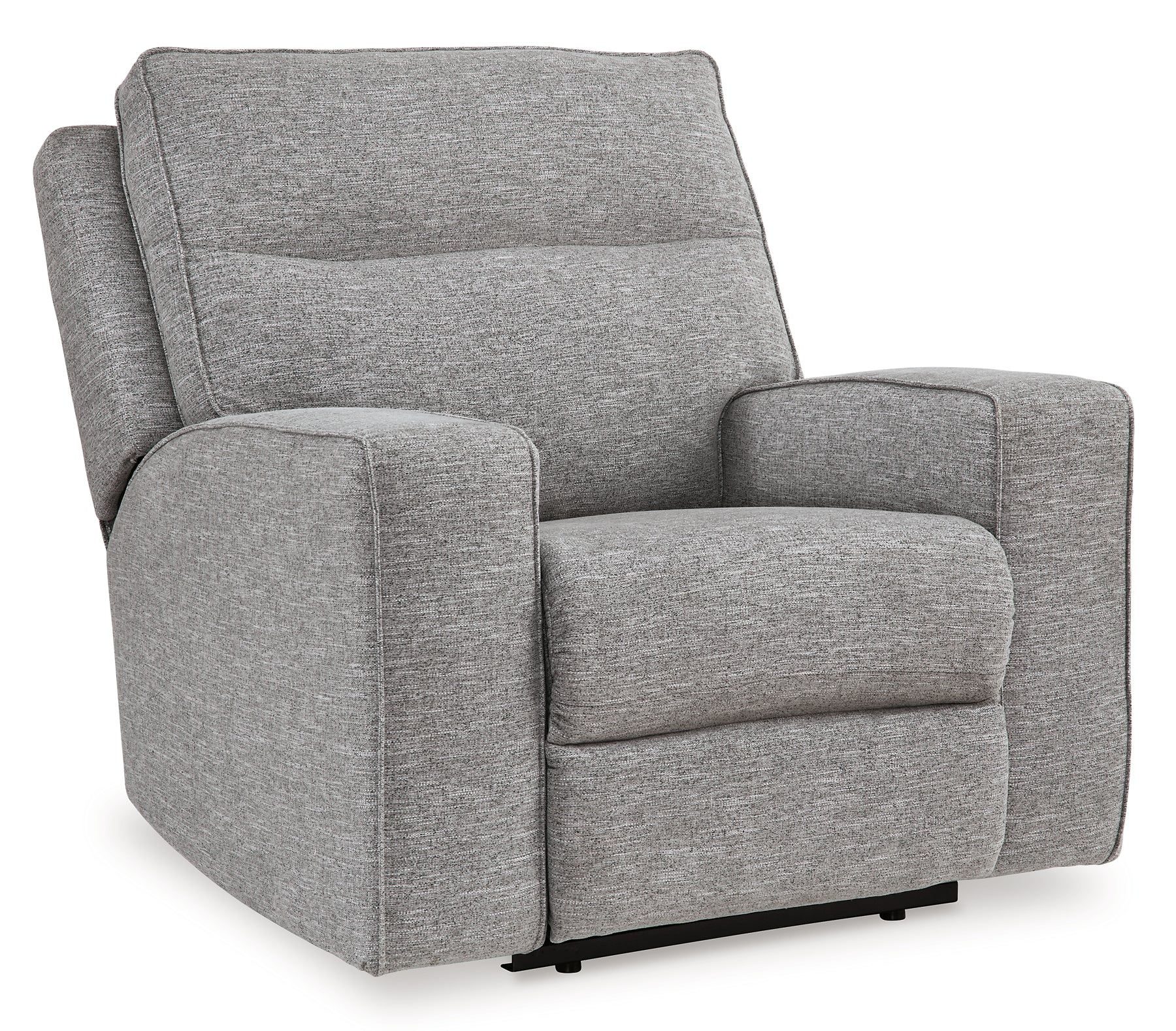 If style is the question, then this power recliner is the answer. Its clean-lined profile is beautifully contemporary. High-performance fabric, machine-washable pillows and plump cushioning make it so easy to comfortably kick up your heels The adjustable Easy View™ headrest allows a primo view of the TV, and the extended ottoman provides extra room to really stretch out. Simply sit back, chill out and recline away—this recliner is designed to be your favorite seat in the house.