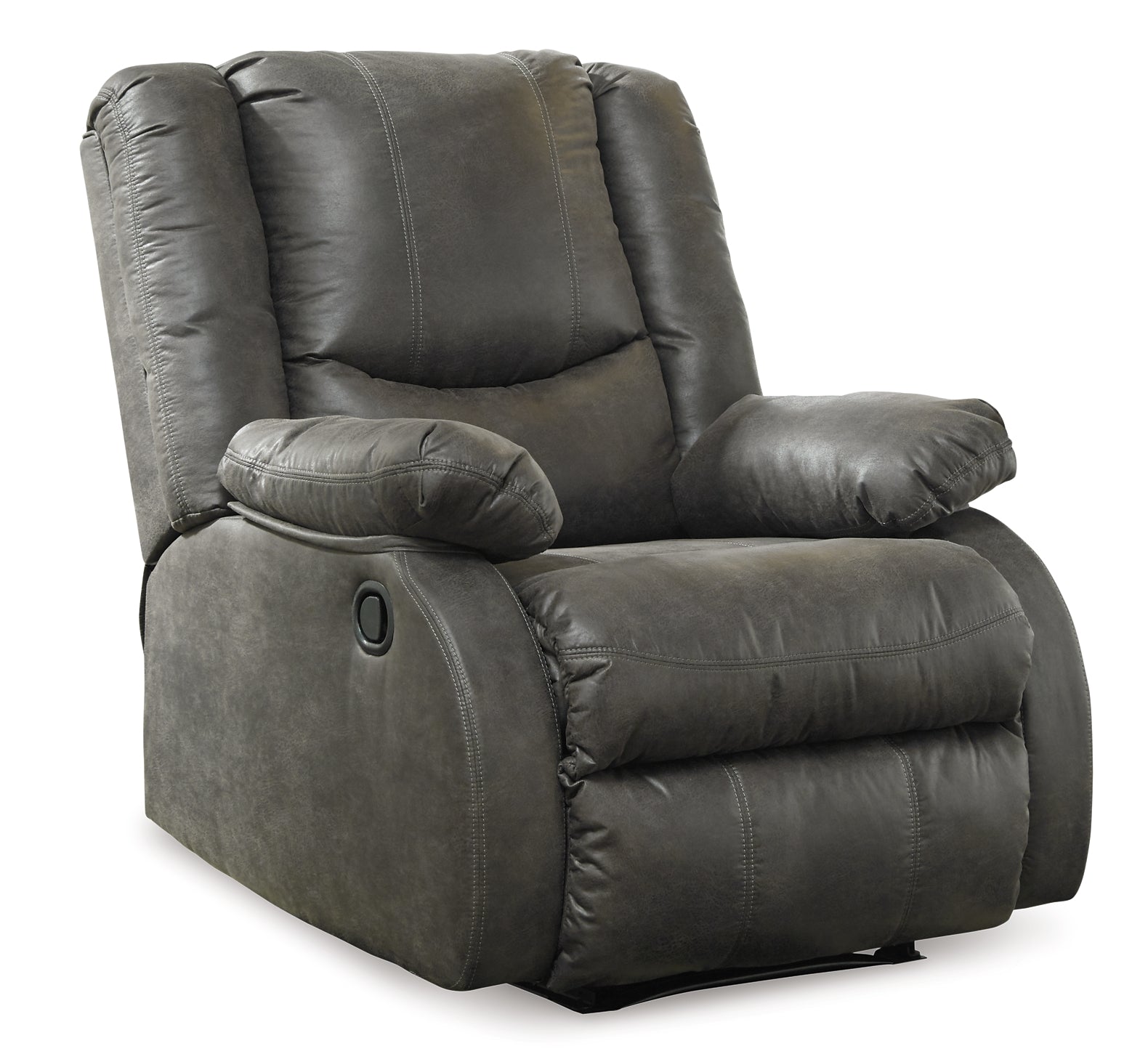 Make a big impression in a smaller footprint with this chicly styled zero wall recliner. Thanks to its space-conscious design that requires a mere three inches between the wall and chair back, you can stretch out more efficiently. Wrapped in a fabulous faux leather loaded with pebbly texture and tonal variation that looks so natural, this designer recliner sports contoured tufting and contrasting baseball stitching for a style home run.