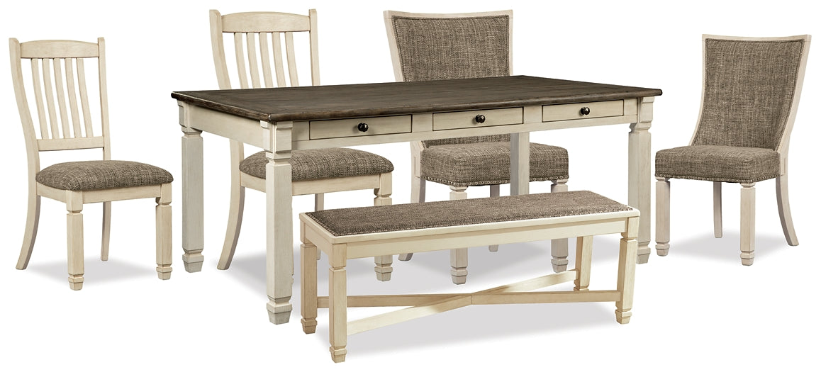 Whether your style is farmhouse fresh or country cottage, this dining package is something to savor. Serving up comfort and flair, a two-tone textural finish gives the group a double helping of charm. Loaded with casual appeal, this vintage-inspired set will add elegance to your space for years to come.