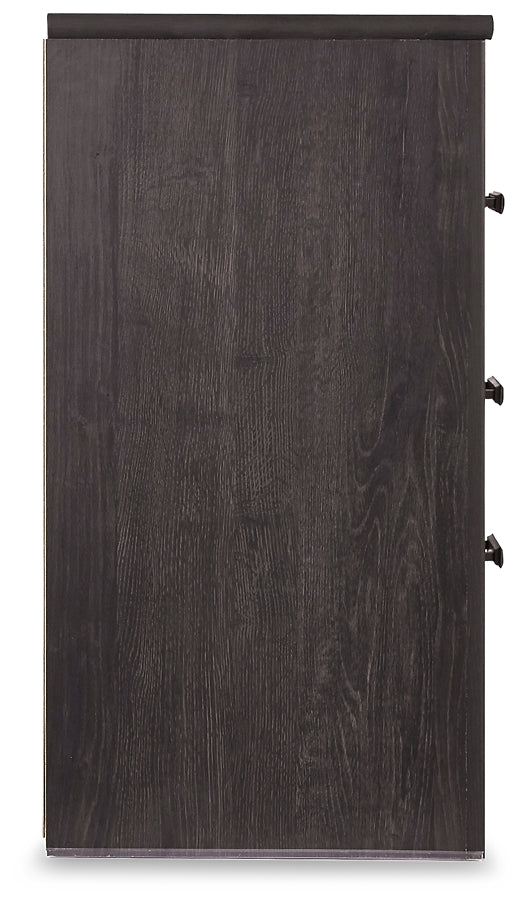 Priced to entice and styled to impress, this alluring king panel bed with dresser, mirror and 2 nightstands is urban sophistication with a decidedly relaxed air. It’s got the crisp, clean lines of a contemporary piece, but with an earthy element. Deep, horizontal grooves infuse depth and dimension, a replicated oak grain effect gives the charcoal gray finish warmth and character.