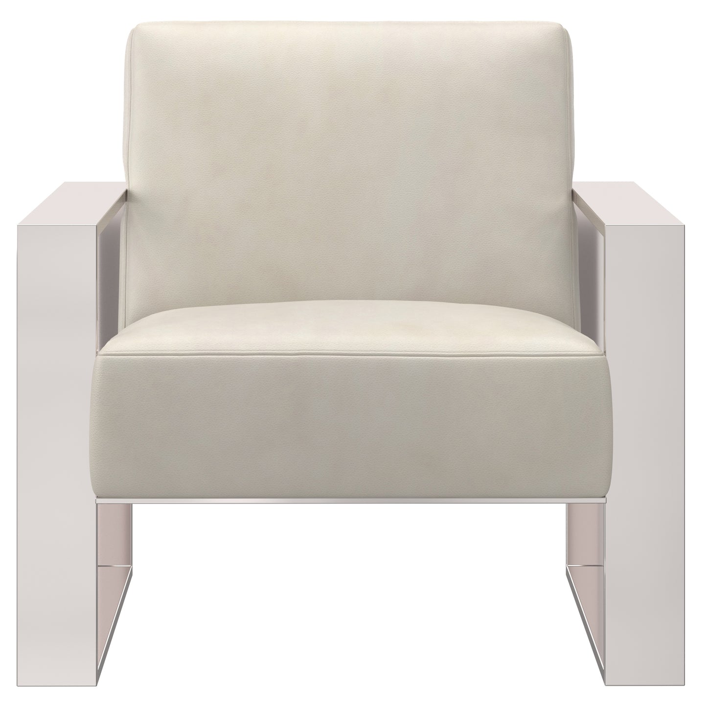 The Britt chair features a polished stainless steel frame and a streamlined silhouette for a modern balance of soft and hard surfaces. Open metal square arms balance a slightly reclined leather seat that creates a comfortable seating destination.