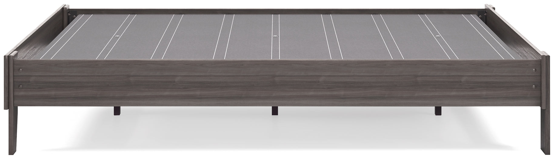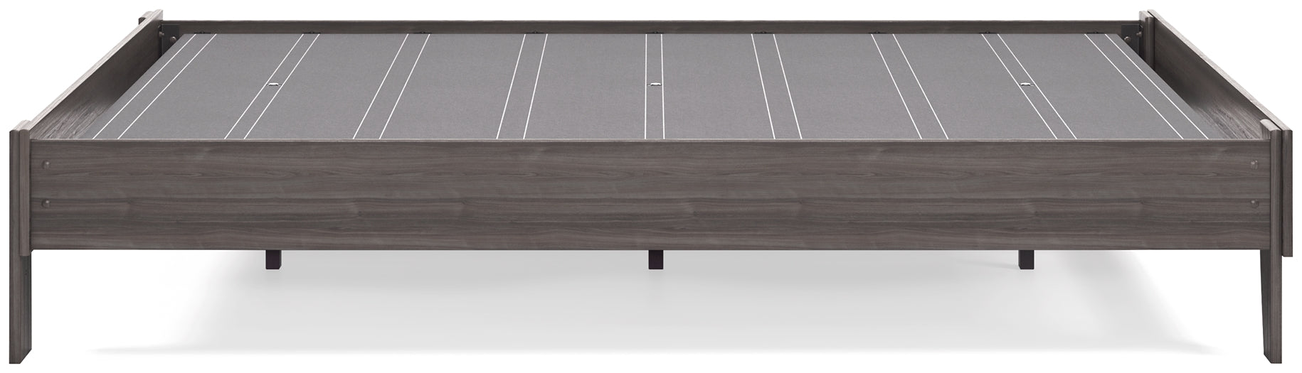 With clean lines evoking a mid-century modern mood, this queen platform bed is designed to bring harmony to your bedroom retreat. Finished in a warm gray that enhances the soothing sensibility.