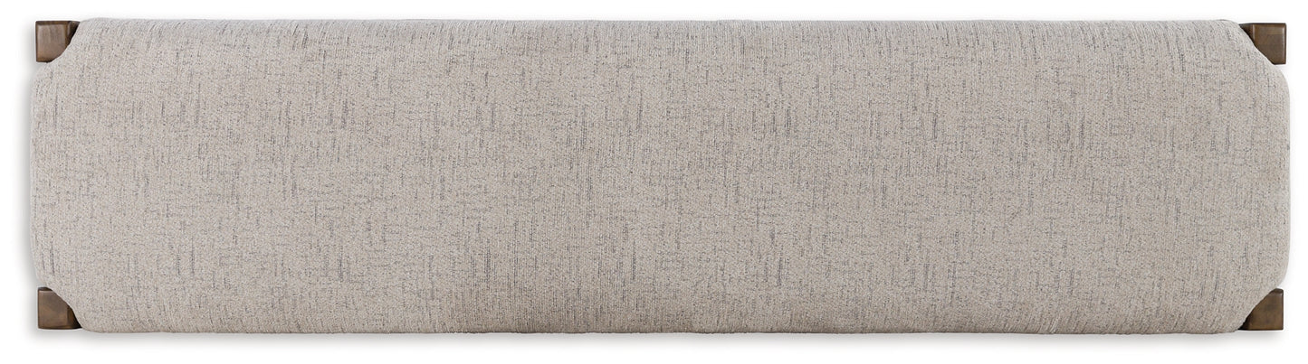 This dining bench sits comfortably at the intersection of modern lodge and farmhouse aesthetics. Your warm and welcoming disposition is reflected in its charming architectural elements and neutral textural fabric. Even with its poise, the bench remains practical. Its cushioned seat invites you to linger longer at the table, defining your dining room with reliable function and style.