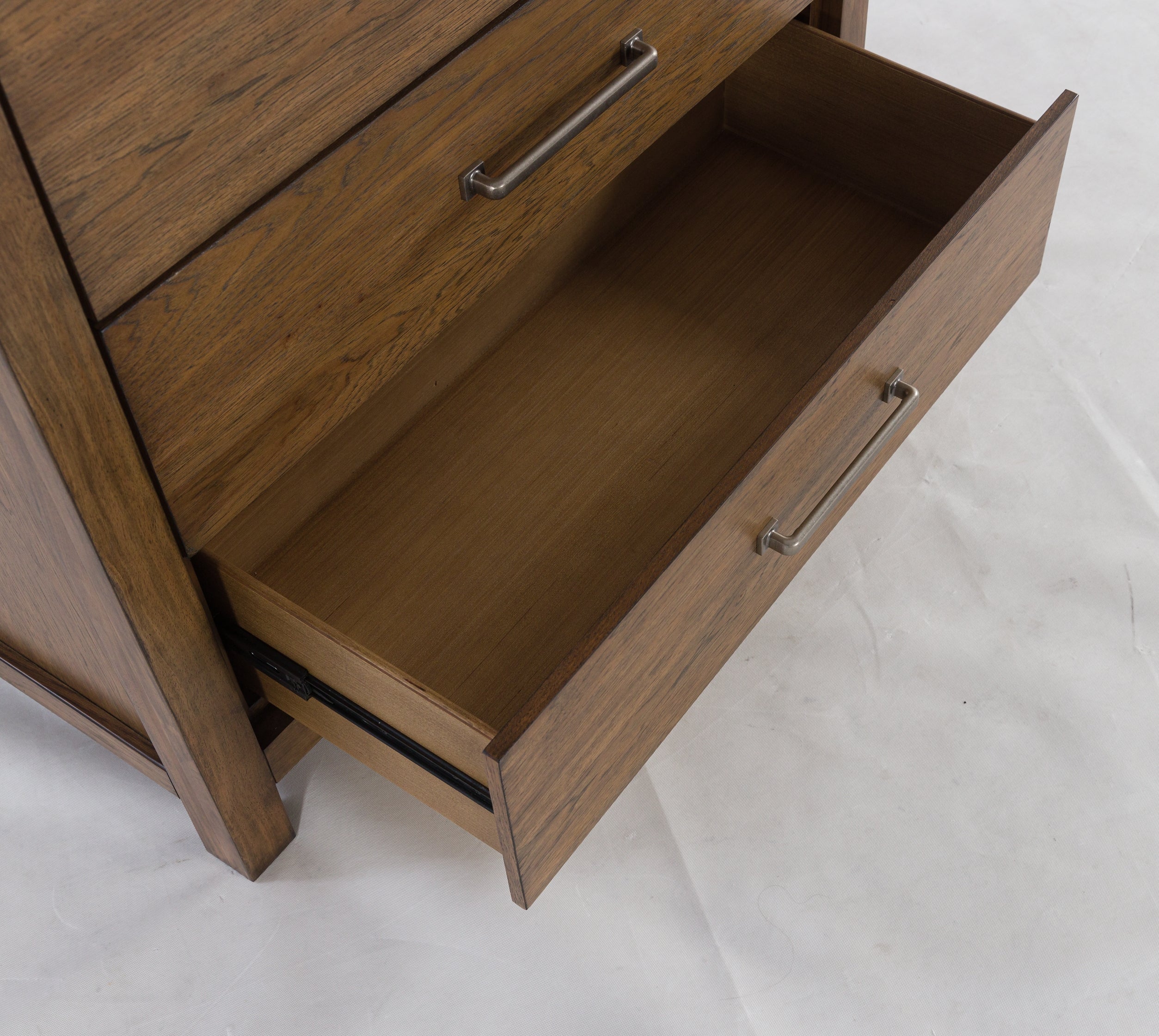 Thiis bedroom package sits comfortably at the intersection of modern lodge and farmhouse aesthetics. Your warm and welcoming disposition is reflected in the charming architectural elements, overall upholstery and light brown glazed finish. Even with its poise, this set remains practical.