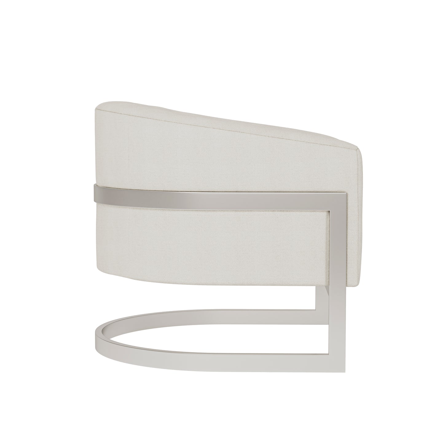 Plush seating with a clean, modern style. The minimalist stainless steel base of the Callie chair offers enduring support while giving a weightless appearance to the upholstered frame. The polished steel creates a sophisticated look, and luxurious cushioning provides ultimate comfort.