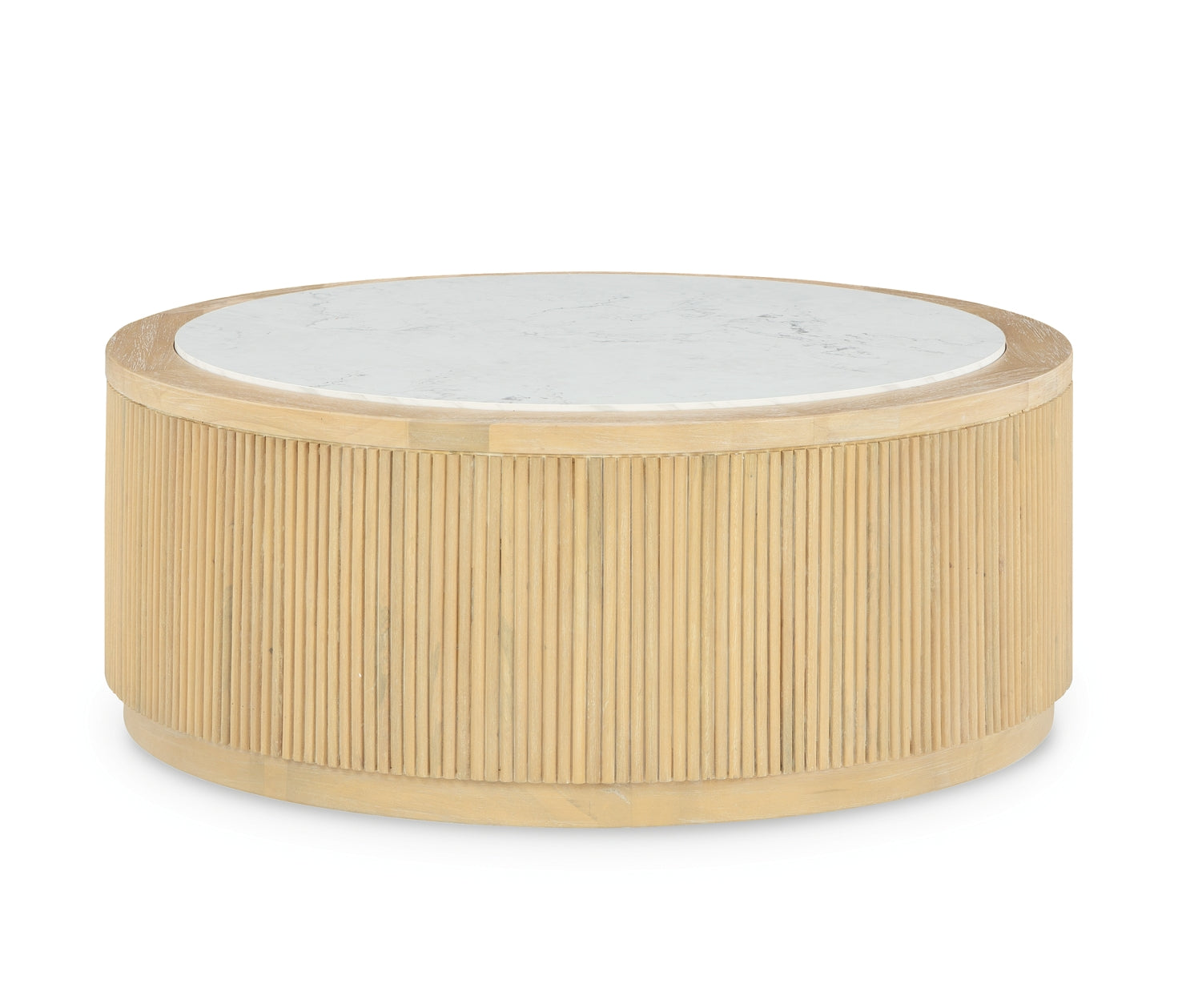 Elegance meets earthy charm in this coffee table. Crafting a contemporary living room? The faux Carrara marble top expertly pairs with the reeded base for a trend-right take on day-to-day function. It’s an ideal spot to rest decorative books and accents. Or place a tray on top to hold remotes and other entertainment essentials. Casters allow you to rearrange as you please.