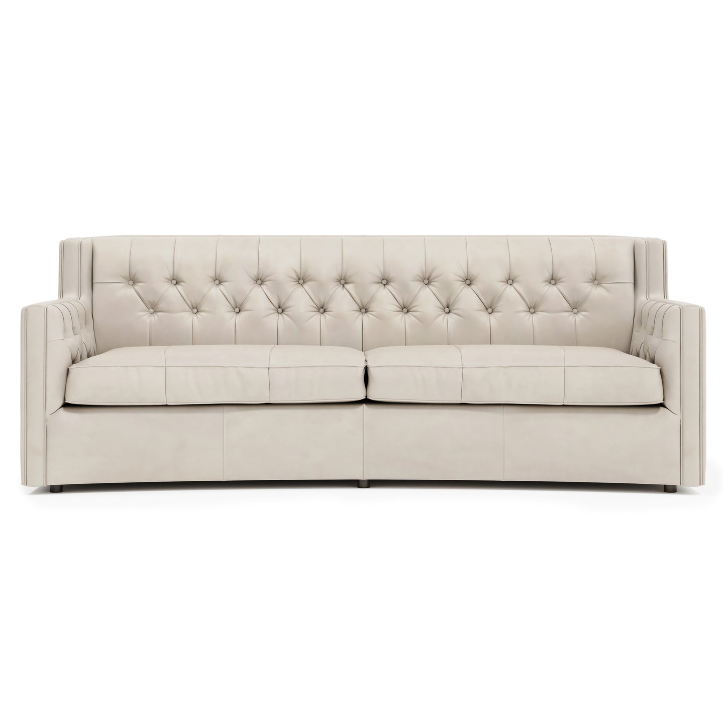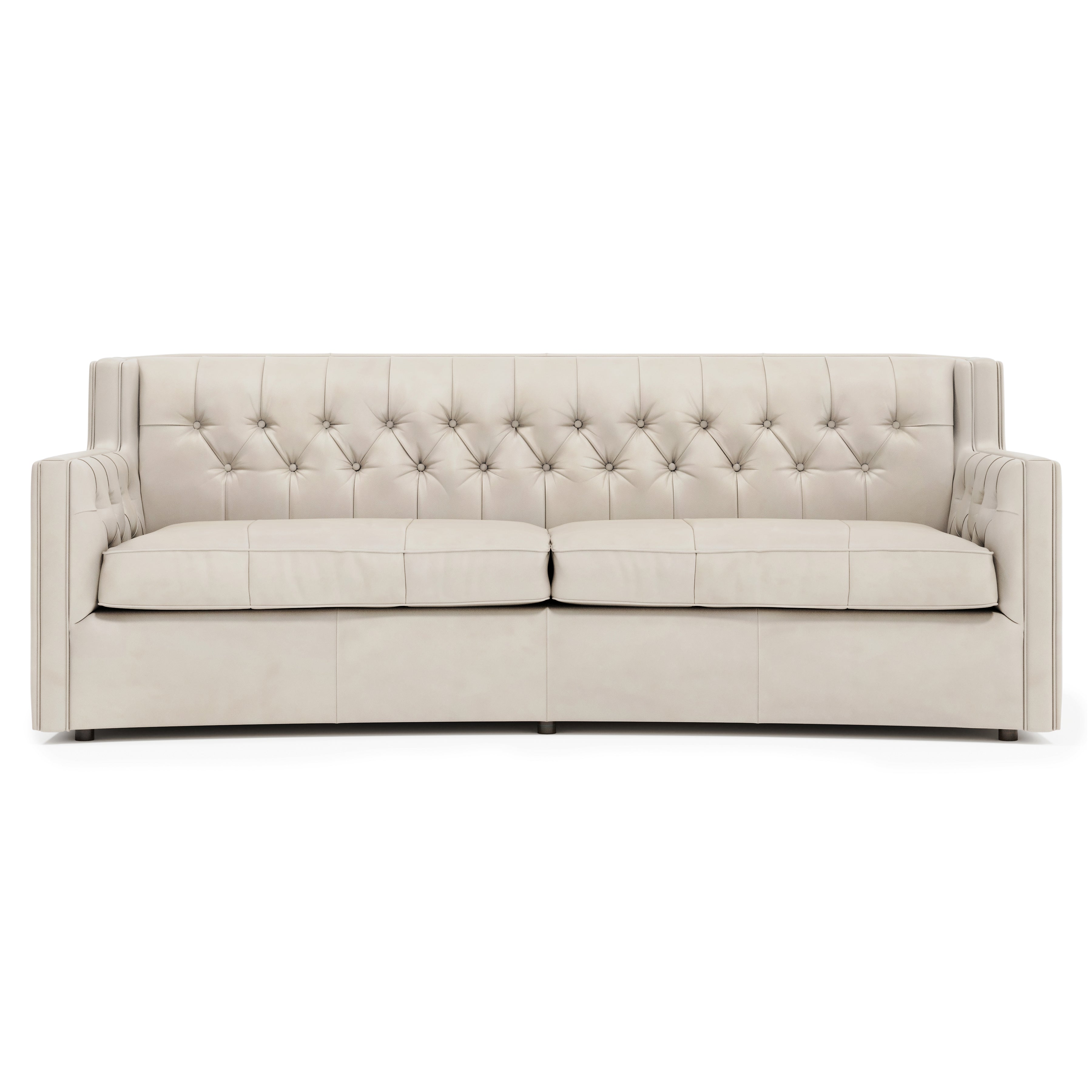 With its subtle crescent shape and sophisticated design details, the Candace leather sofa offers luxurious comfort with elegant style. Classic elements like welt trim and button tufting create a refined, polished look, while sleek lines and track arms add contemporary appeal. The perfect mixture of traditional and modern style.
