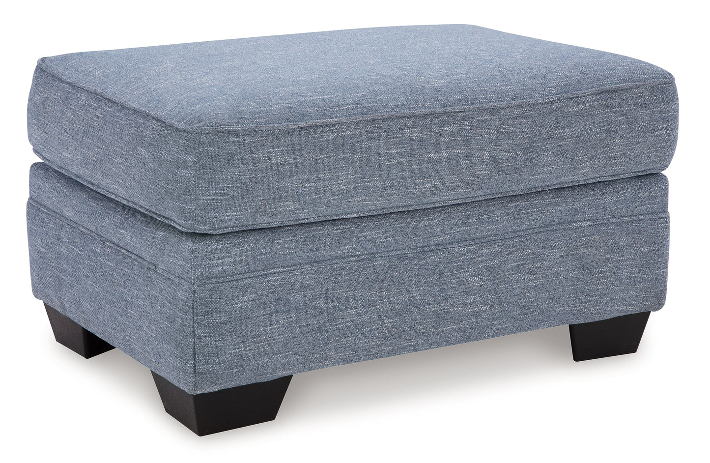 This ottoman is defined by comfort, convenience and classic style. Soft to the touch and stain-resistant, its Next-Gen Nuvella™ fabric is easy to maintain. And you'll love the universal appeal of its denim-inspired hue. The perfect companion to your chair or sofa, the ottoman is a simply chic approach to everyday relaxation.