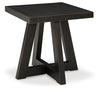 This designer end table makes it hip to be square. Bold, blocky profile is enriched with plank-effect styling and a textured grayish brown finish for a look that’s cool and contemporary and a vibe that’s warm and inviting.