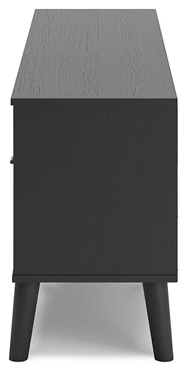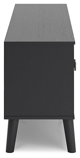 Put a retro spin on current trends with this entertainment center. Its mixed-material look of matte black and replicated beige cane brings a casually cool feel to your living room. Simple, sleek hardware and splay legs round out the urban meets mid-century vibe.
